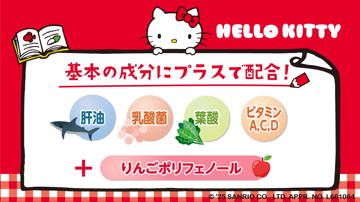 そうした盛り上がりを背景に、野口医学研究所では“楽しさと健康を両立できる”新しい肝油ドロップの形を模索。そこで実現したのが、長年多くの人に愛され続けるキャラクター「ハローキティ」とのコラボです。