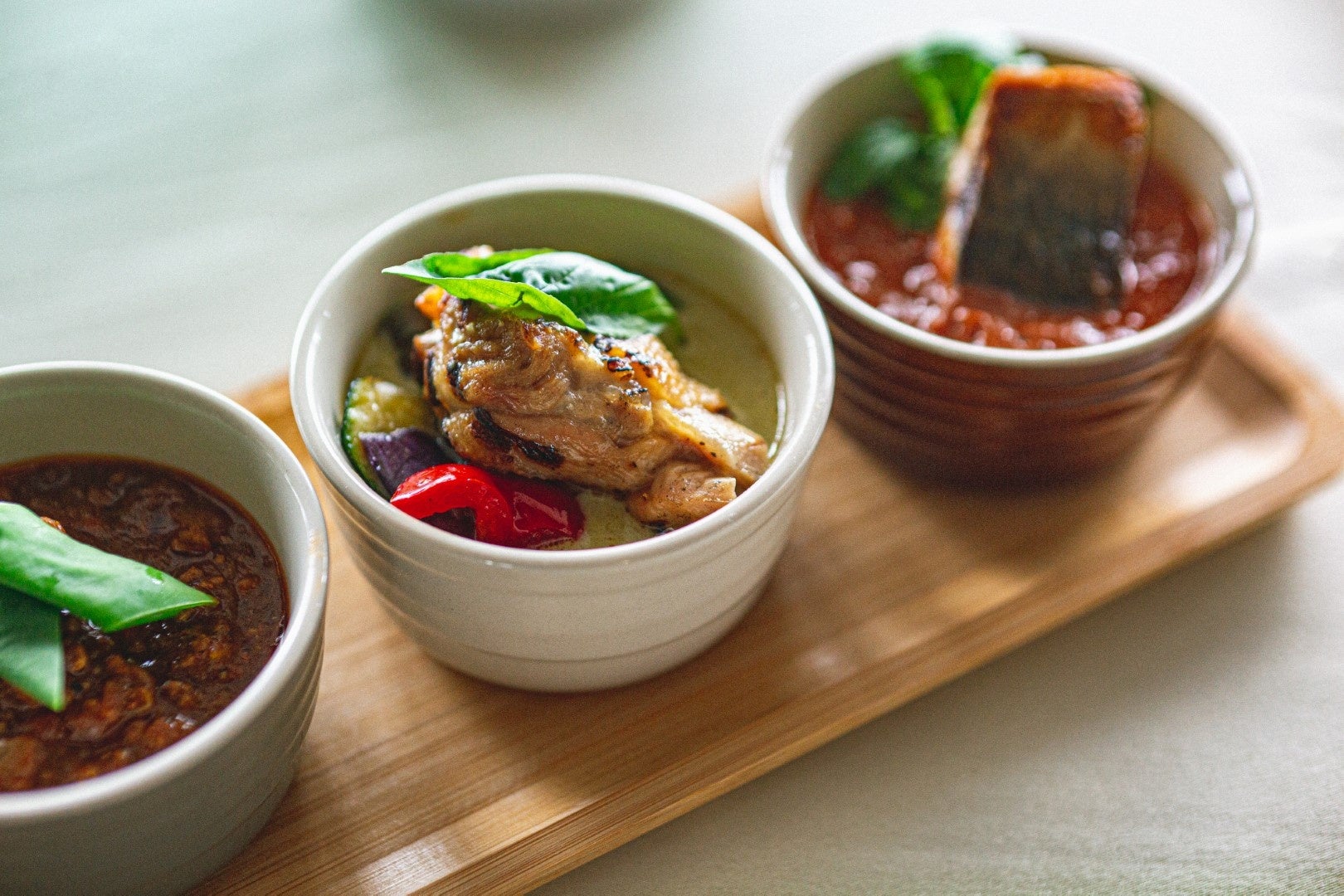 「キーマカレー」「グリーンカレー」「サバカレー」の3種類のカレーが、個々の個性と美味しさを持ってお出迎えします。
