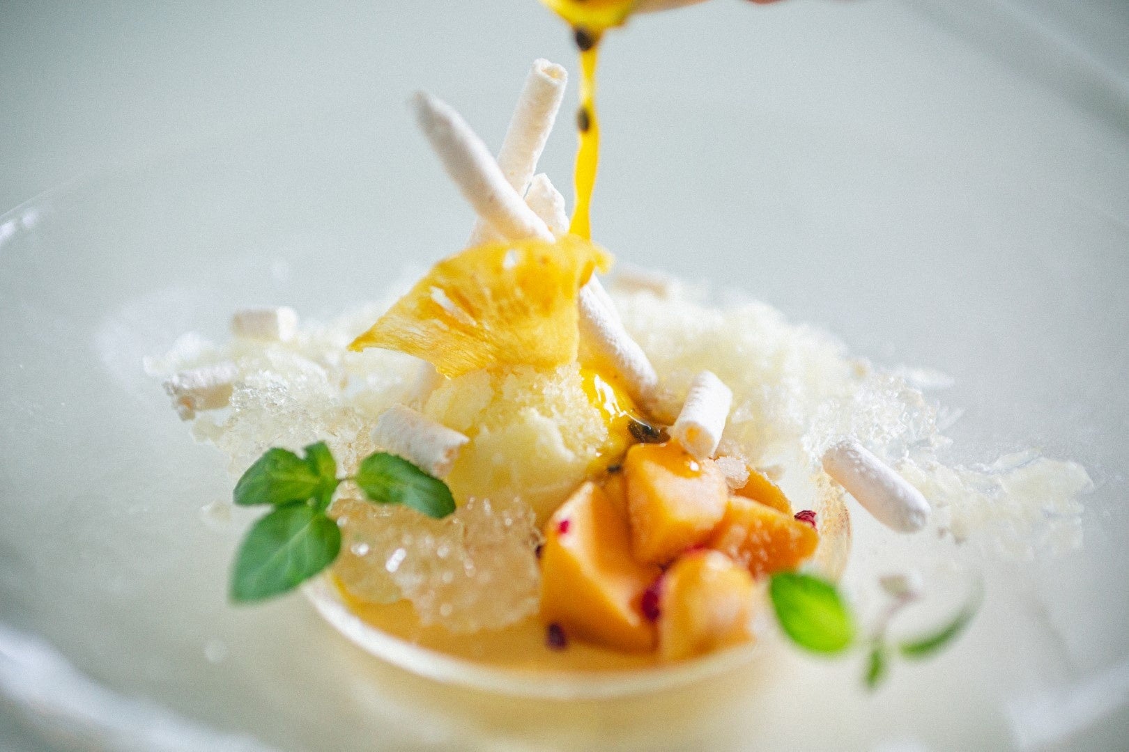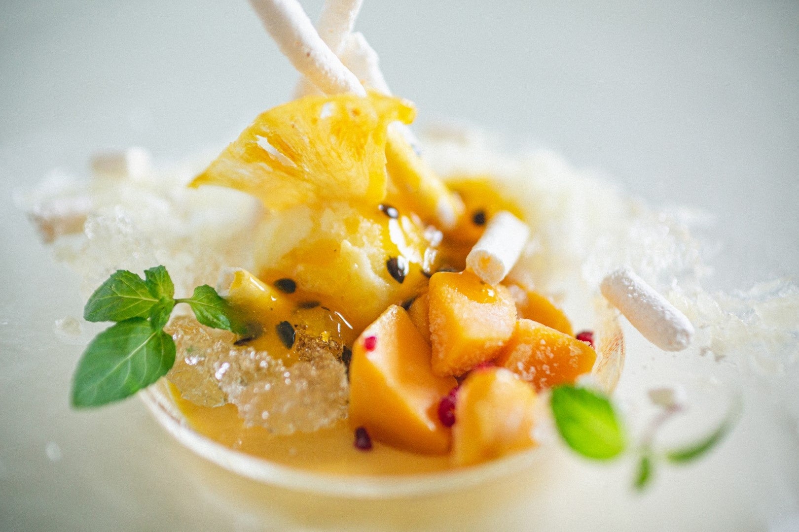 途中で付け合わせのパッションシードソースを上からかけて召し上がってみてください。