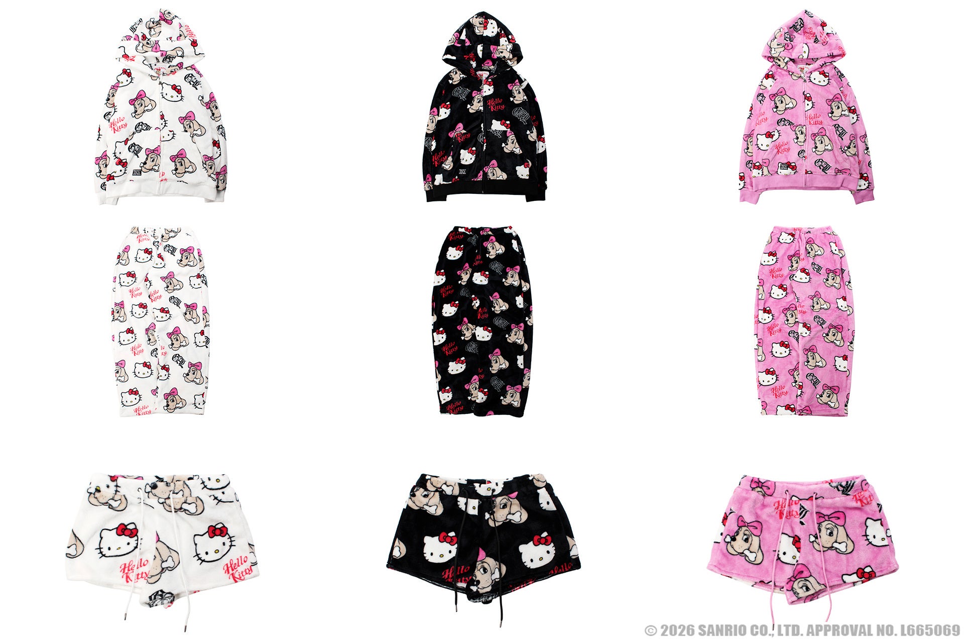 本コラボレーションは、ハローキティとCANDY GALFYの交わりを独自に解釈した世界観をビジュアルに落とし込みデザインしました。アイテムラインナップはCANDY GALFYでも高い人気を誇るSETUPやパーカーをはじめ、ユニセックスアイテムまでしっかりと充実した全12品番を展開いたします。洋服のボディだけでなく、キャラクター同士のコラボレーショングラフィックにも注目いただきたいコレクションとなっております。