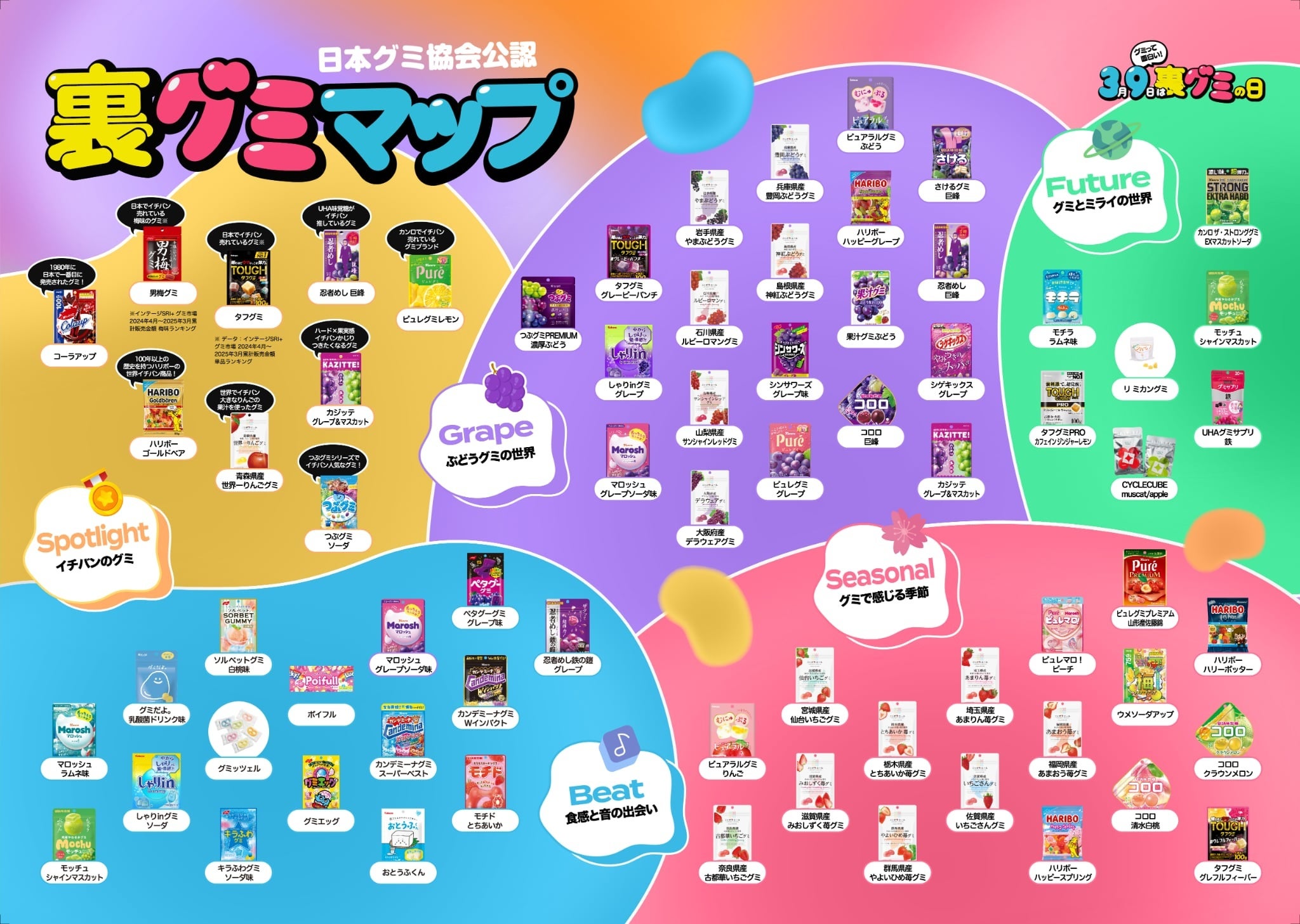 主要メーカーのグミを横断型で網羅しており、ここでしか楽しめないマップとなっています。