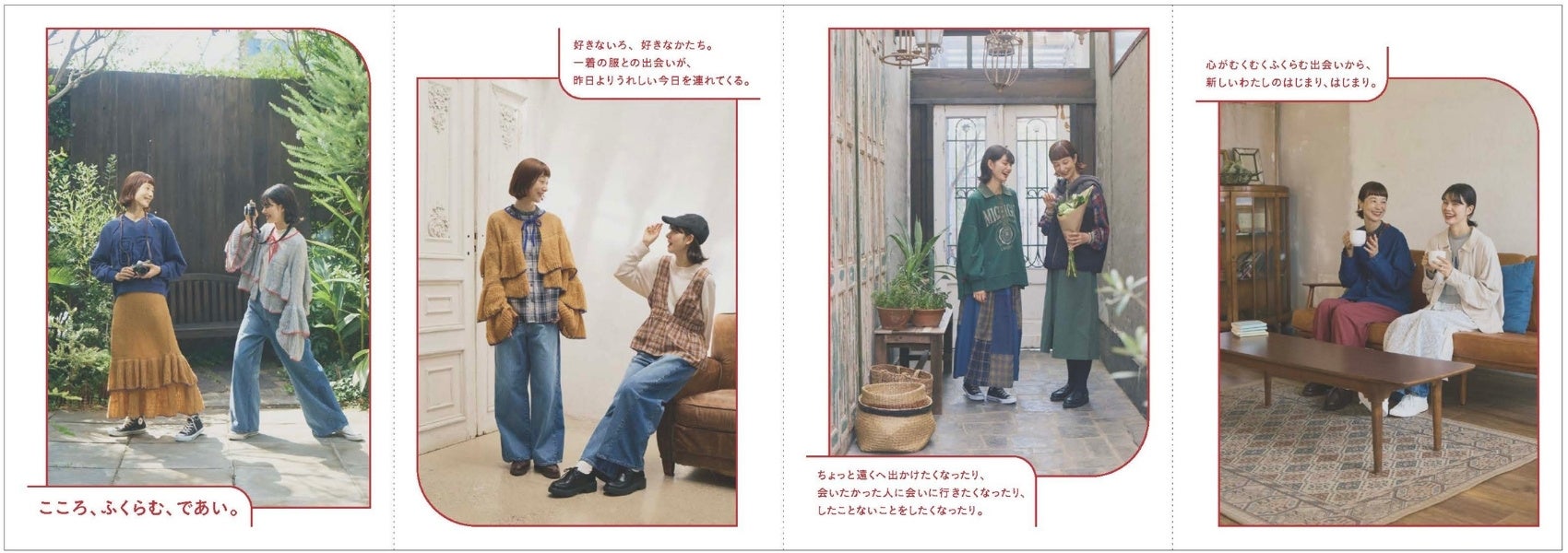 今季のシーズンコピーには、服との出会い、人との出会い、そして自分自身との出会いという想いを込めています。さまざまな出会いを通じて、心が少しずつあたたかくふくらんでいく感情の変化を表現しました。一着の服が、前向きな気持ちや新しい自分を始めるきっかけになる。