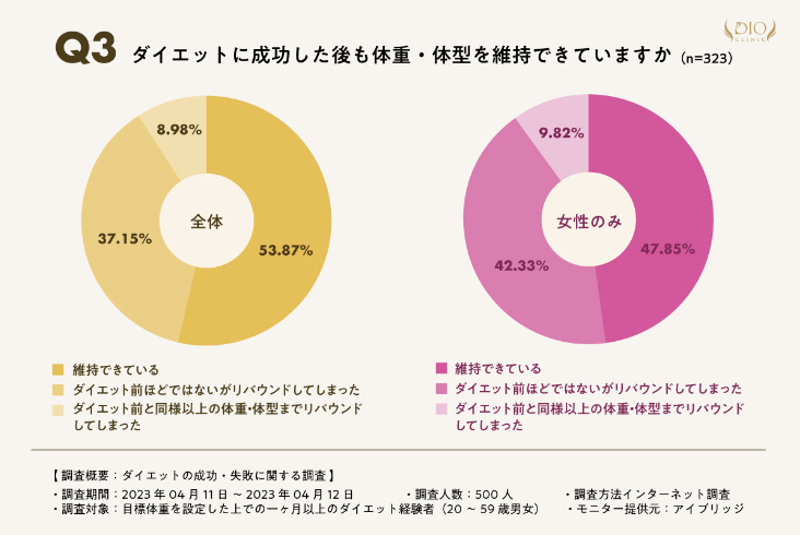 【リバウンドしている人は●%!?】医療痩身専門「ディオクリニック」が世間のダイエット成功率を市場調査