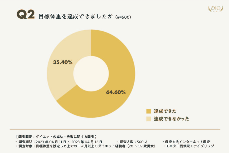 「世間ではどれほどの人がダイエットに成功しているのか?」を、医療ダイエット専門のディオクリニックが市場調査。500名に対してアンケートを行い、医師が医学的な見解を述べた。
