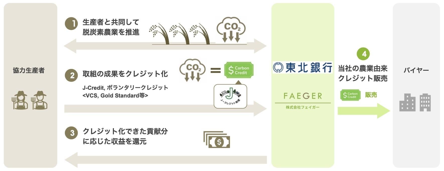 今回両社が連携することで、稲作が盛んな東北エリア一体の農業由来カーボンクレジットの生成および東北銀行が持つ地域ネットワークをいかした東北エリアの企業へのカーボンクレジットの販売が実現し、地産地消型の脱炭素のあり方を探求していきます。