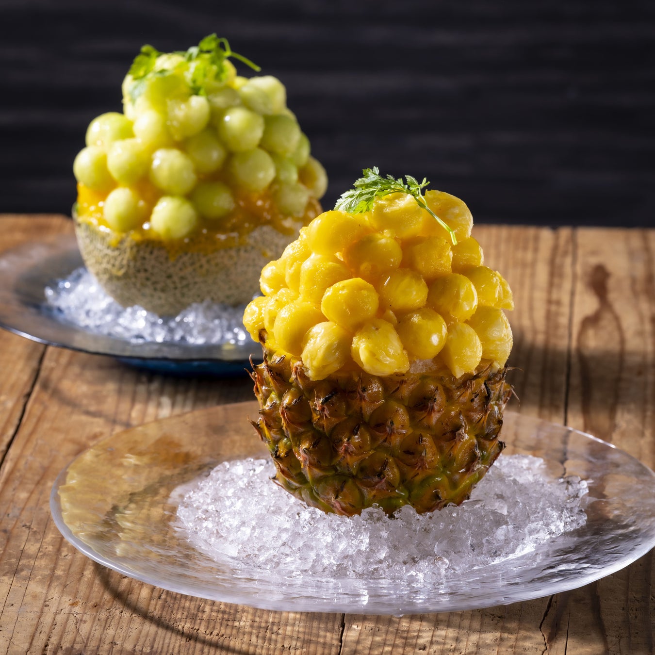 「生メロンかき氷」¥1,900 / 「生パインかき氷」¥1,500