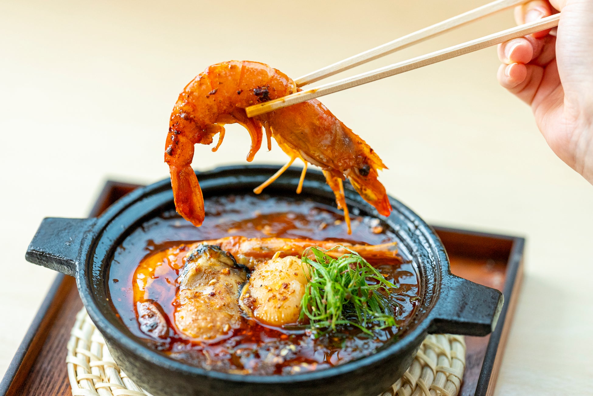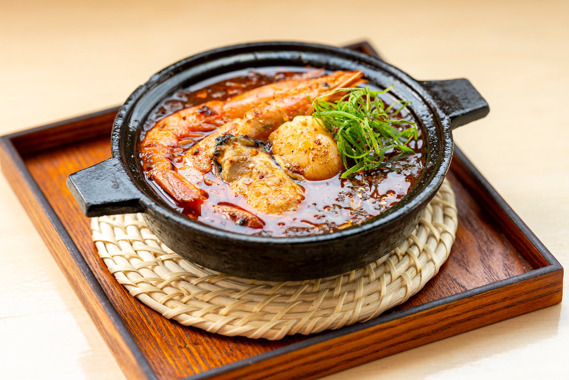 プリプリのエビ、ジューシーな牡蠣、そして濃厚なホタテがピリ辛の特製麻婆と絶妙に絡み合い、一口ごとに海鮮の旨味が口いっぱいに広がります。滑らかな京豆腐が全体の味をまろやかにまとめ、香り豊かな薬味が食欲をそそる逸品です。