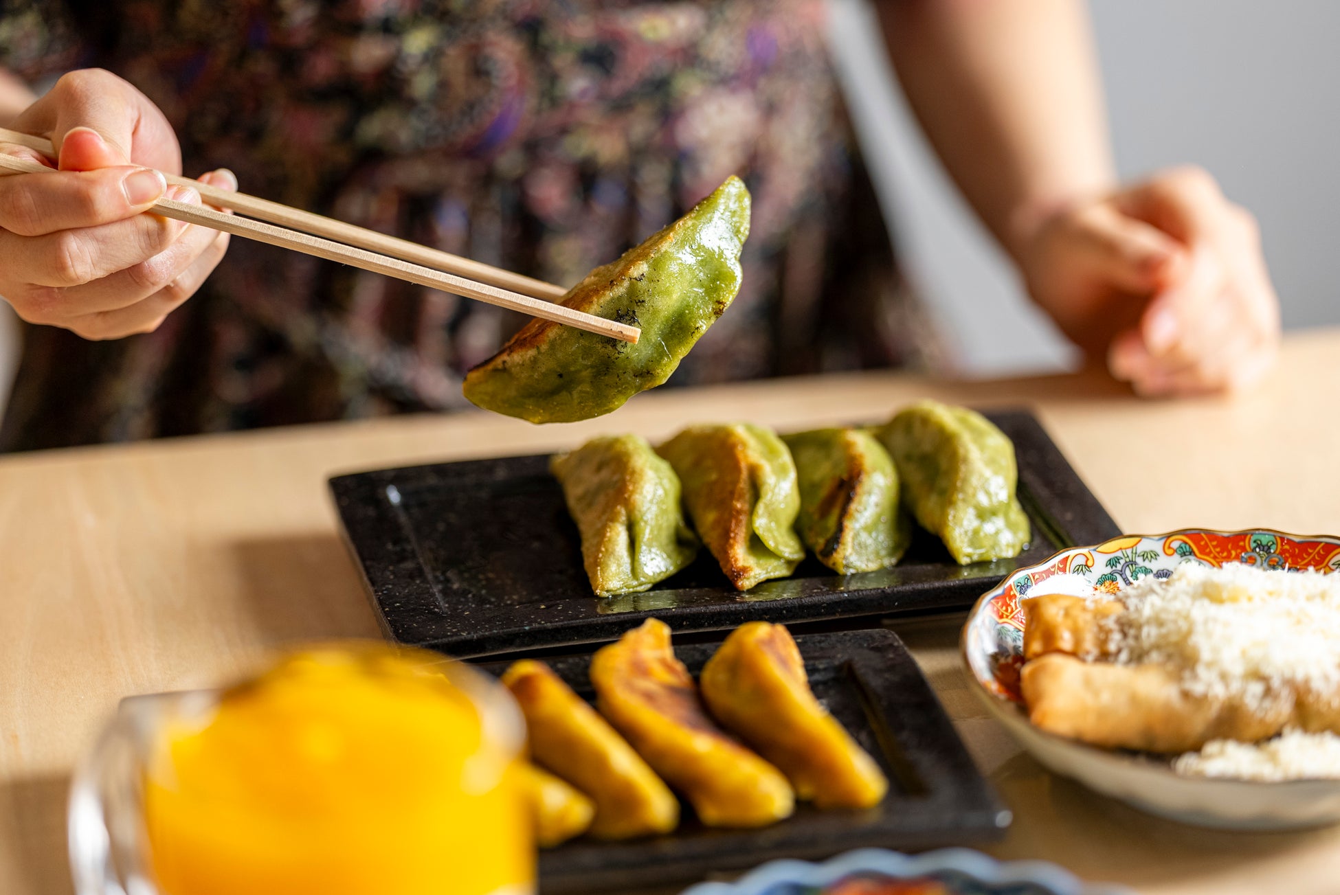 見た目も鮮やかな、こだわりの餃子をご用意しました。厳選された素材を使用し、各餃子にはそれぞれの特徴と風味が詰まっています。