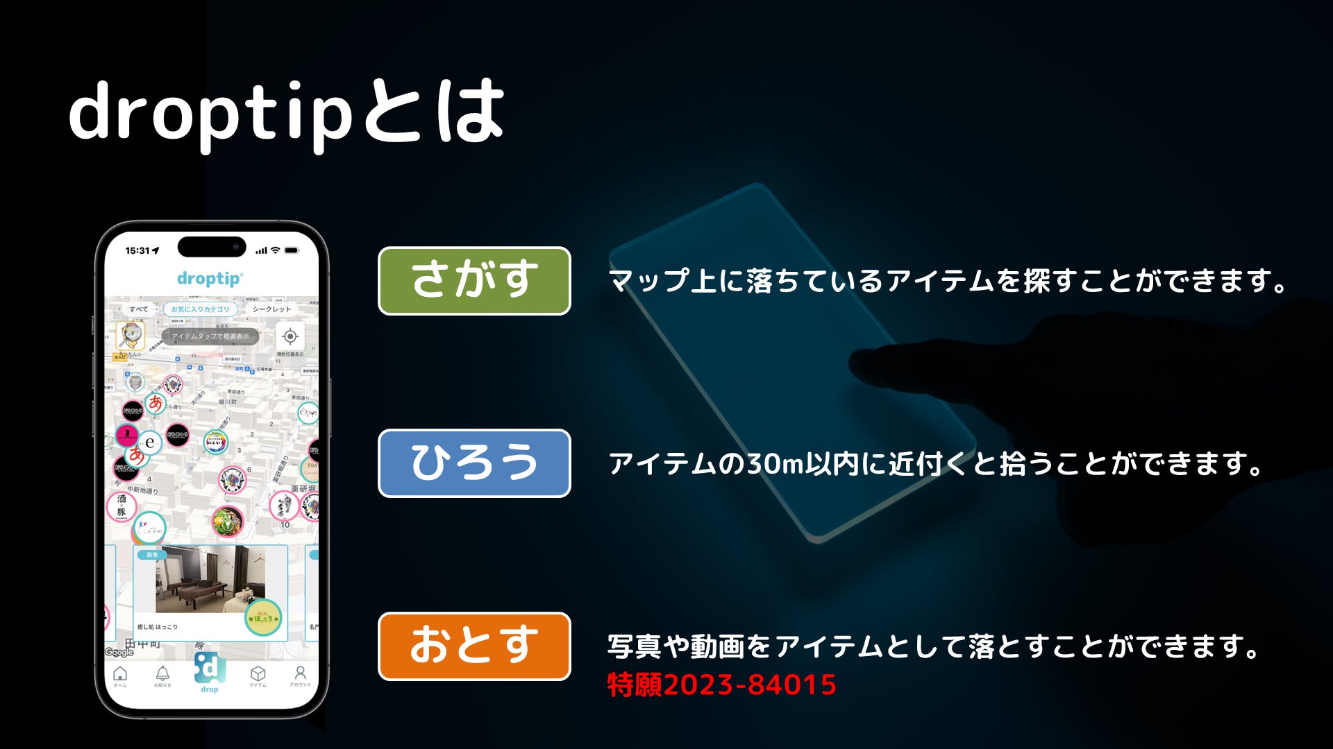 ※マップ上にアイテムをドロップするという仕組みは特許を出願しています。