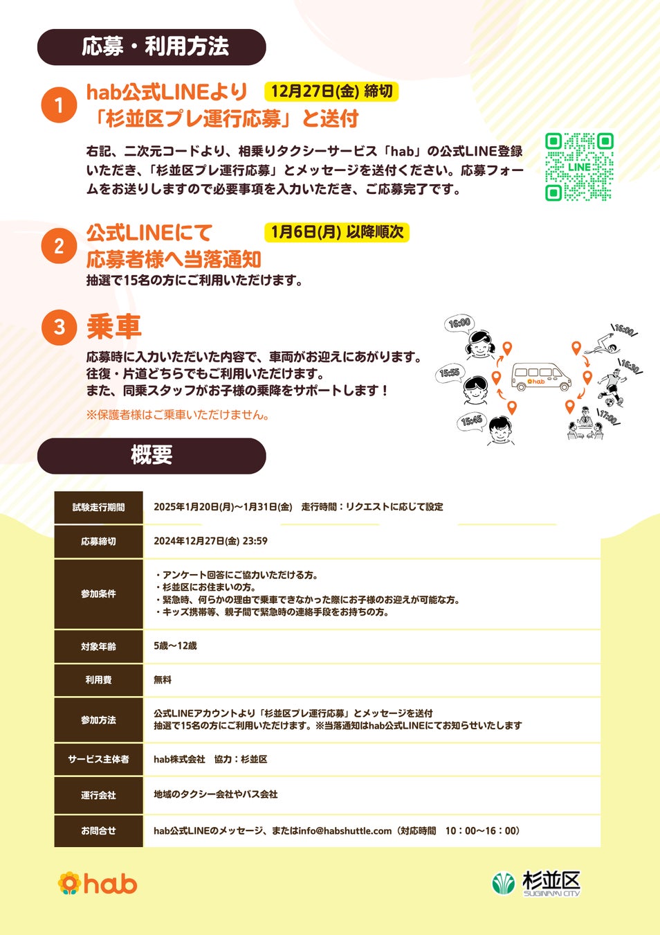 habの子ども専用送迎サービスのノウハウを活用し、地域社会と連携して新たな移動手段を提供することで、杉並区の移動課題解決を目指します。