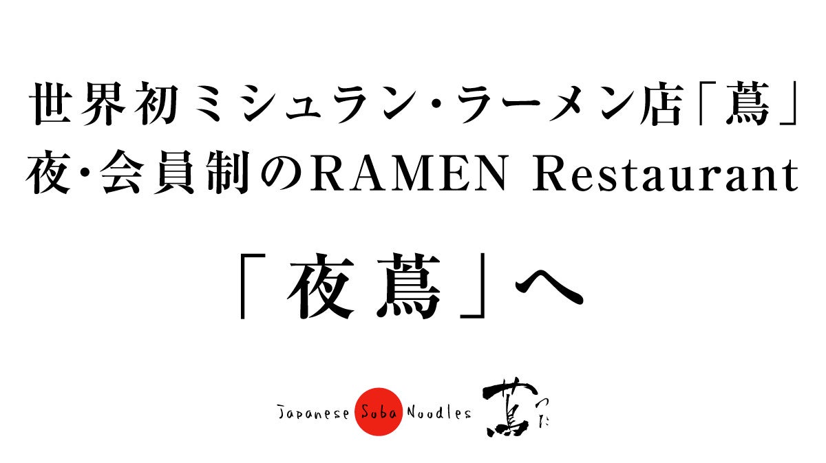 プロジェクト名:世界初!ミシュラン4年連続★獲得ラーメン店がディナータイムの会員制「夜蔦」開始!