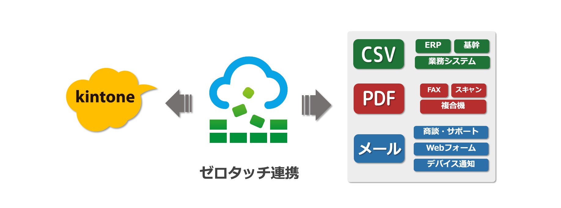 kintoneはサイボウズ株式会社(本社:東京都中央区 代表取締役社長:青野 慶久 以下「サイボウズ」)が展開する業務改善サービスで、既存システムとkintoneとのデータ連携を通じてDXを推進したいというニーズが高まりつつあります。当社はサイボウズのオフィシャルパートナーとして、より広範囲な販売チャネルを通じ、これまでよりさらに手軽に簡単に企業内システムとkintoneとのデータ連携を実現できる環境を整備していきます。