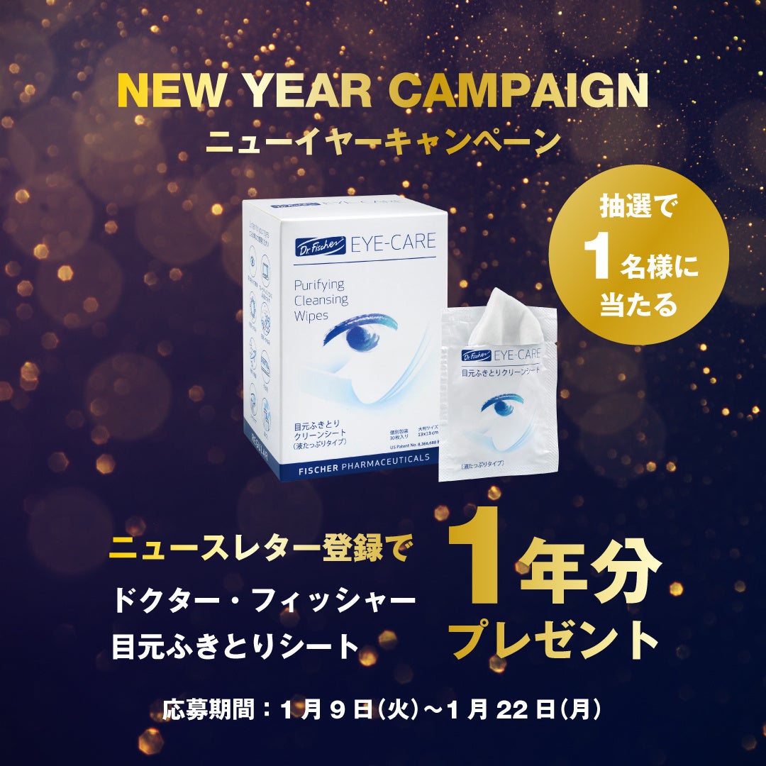 目元ふきとりシートを展開する眼科薬に特化したフィッシャー・ファーマシューティカルズ社(本社イスラエル、以下ドクター・フィッシャー)では、2024年第一弾キャンペーンとして、ドクター・フィッシャー目元ふきとりシート1年分が抽選で1名様に当たるニューイヤーキャンペーンを、2024年1月9日(火)〜1月22日(月)に実施します。