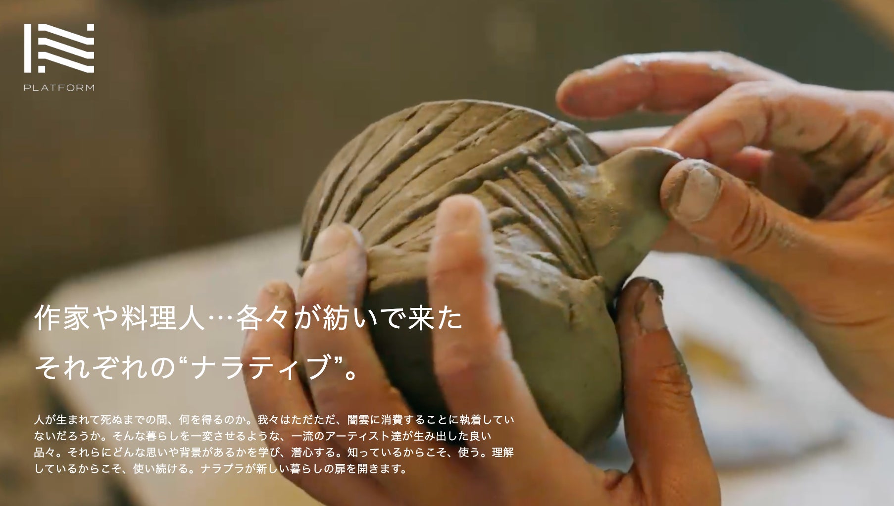 具体的には、作家や作品に出会えるEコマースのプラットフォーム「Narrative Platform(ナラティブ・プラットフォーム)」を展開していますが、この傘の下には、特別に創られた作品(器)を観て購入できる「WARE(ウェア)」というサービスがあります。このほか、作品(器)を愉しむための一流シェフによる冷凍グルメ「FROZEN(フローズン)」や、作品の源流に触れる旅「TRAVEL(トラベル)」など、立体的に伝統工芸を体感できるサービスを今後拡充していく計画です。こうした様々なサービス展開を推進する中で、物語を起点にした新たな購入体験という概念が広がり、ナラティブ・プラットフォームが通称ナラプラとして広く生活者の中に浸透していくことが私たちの理想です。その状態こそが、健全に日本の伝統工芸が守り、発展していく道筋であると信じています。