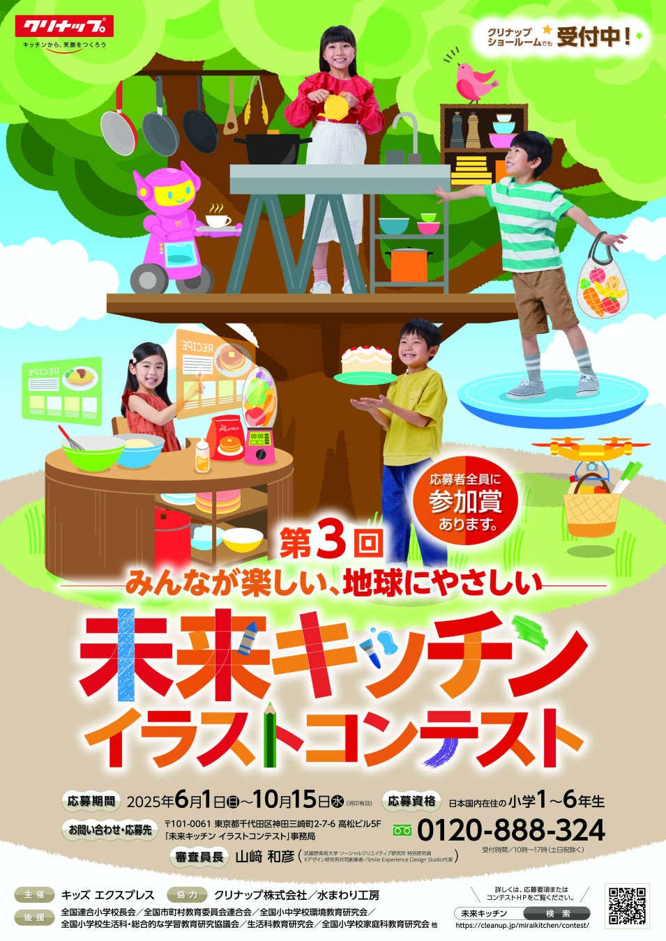 クリナップ(本社:東京都荒川区 代表取締役 社長執行役員:竹内 宏)は、「未来キッチンプロジェクト」の一環として、第3回開催を迎えた「未来キッチン イラストコンテスト」(主催 : キッズ エクスプレス )に2025年度も協力します。今回より新たに全国のクリナップショールームでも、作品応募を受け付けます。応募期間は6月1日~10月15日です。