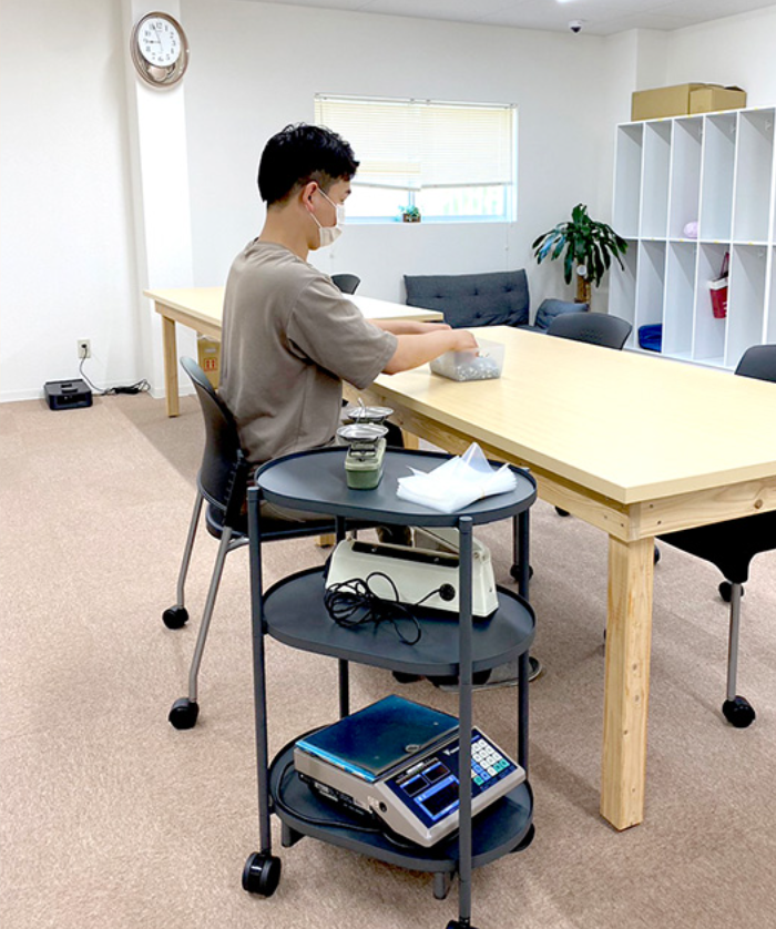 これまで、利用者様が行う業務に必要な備品は、全てスタッフが準備していました。 中でも、利用人数が増えていくにつれ、準備した内職品を各利用者様の机に運んで、完成したら回収するという運搬作業の負担が大きいという課題がありました。 さらに業務以外にも、お昼休憩時のお弁当もスタッフが配膳しており、何とかこの運搬作業を効率化できないかと悩んでいたところ、カチャカの導入を検討。スタッフの負担軽減に繋がると考え、導入に至りました。