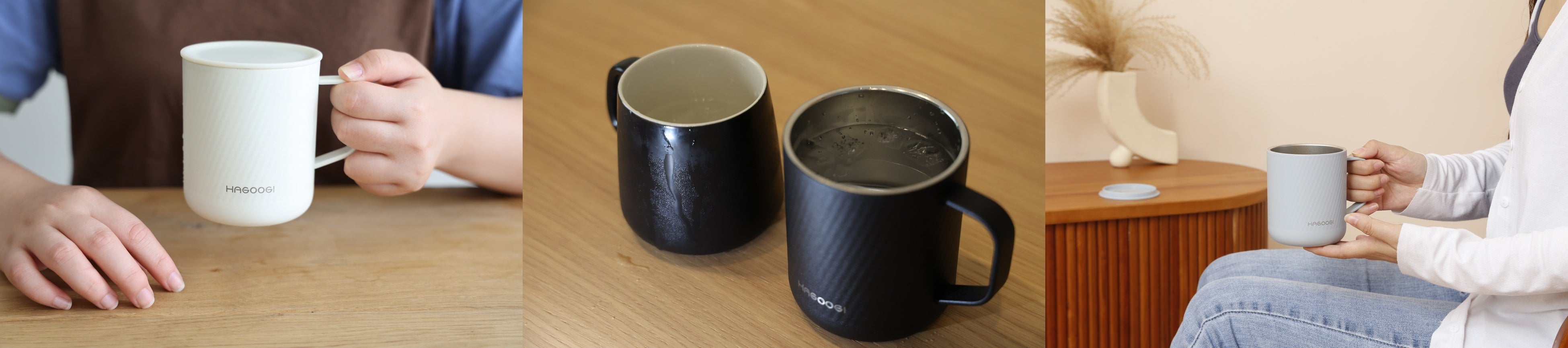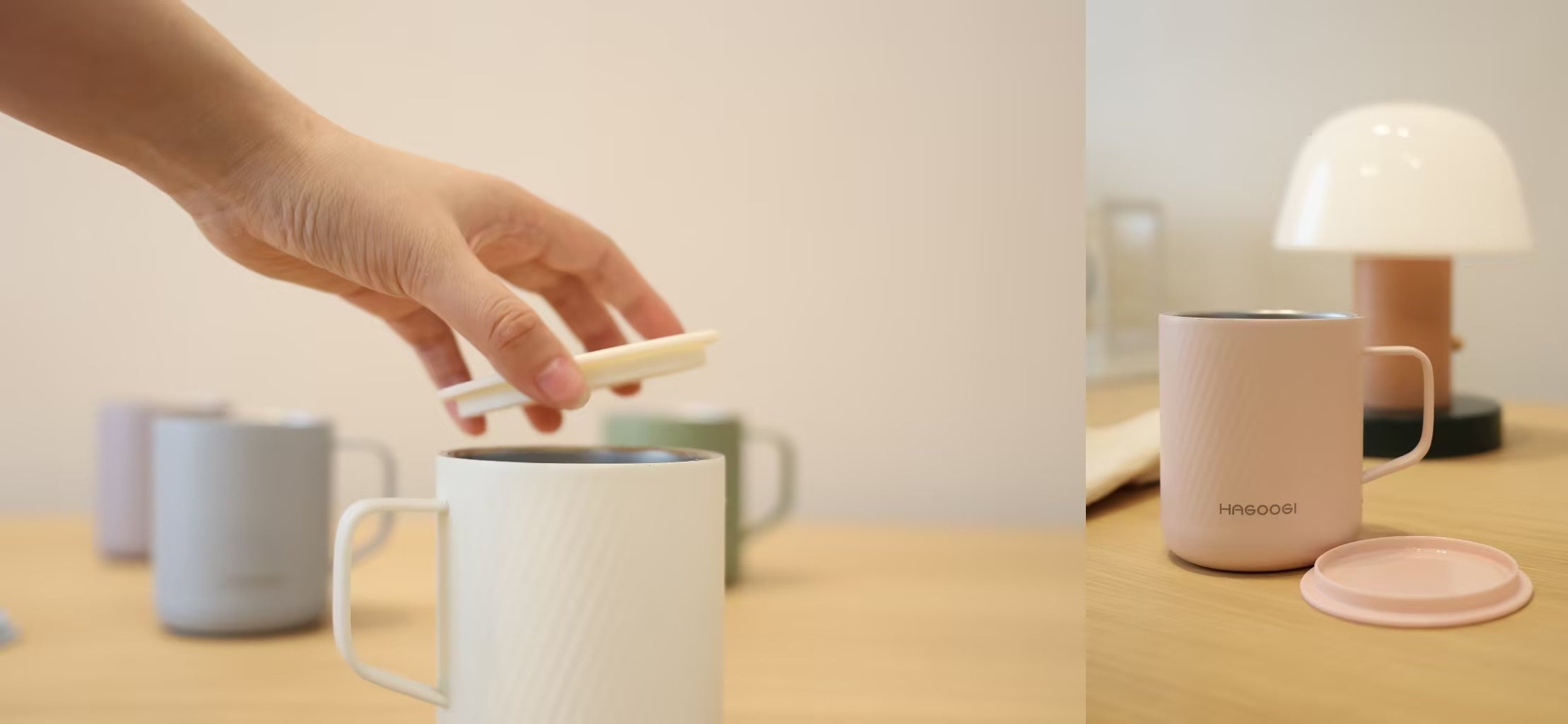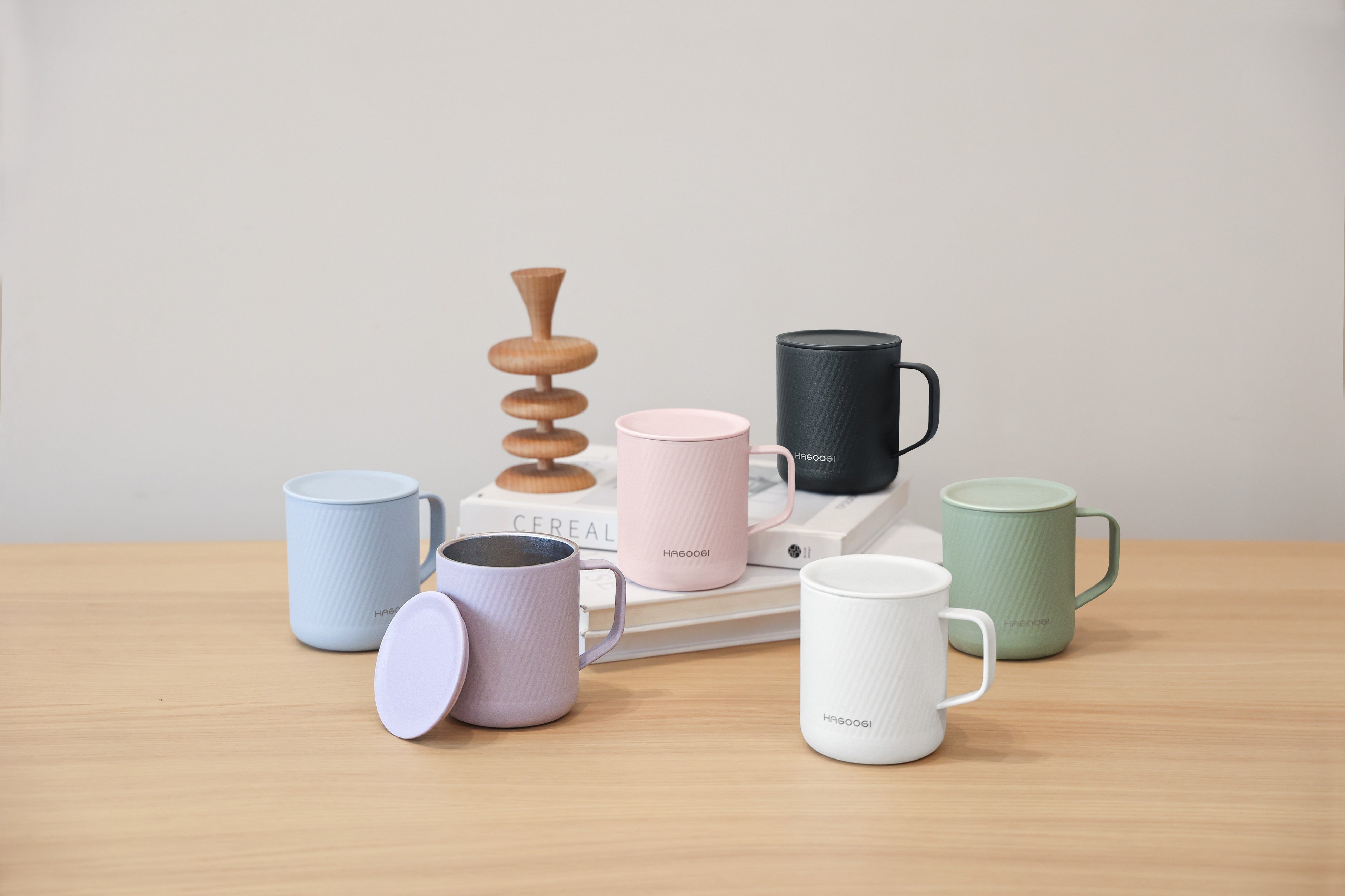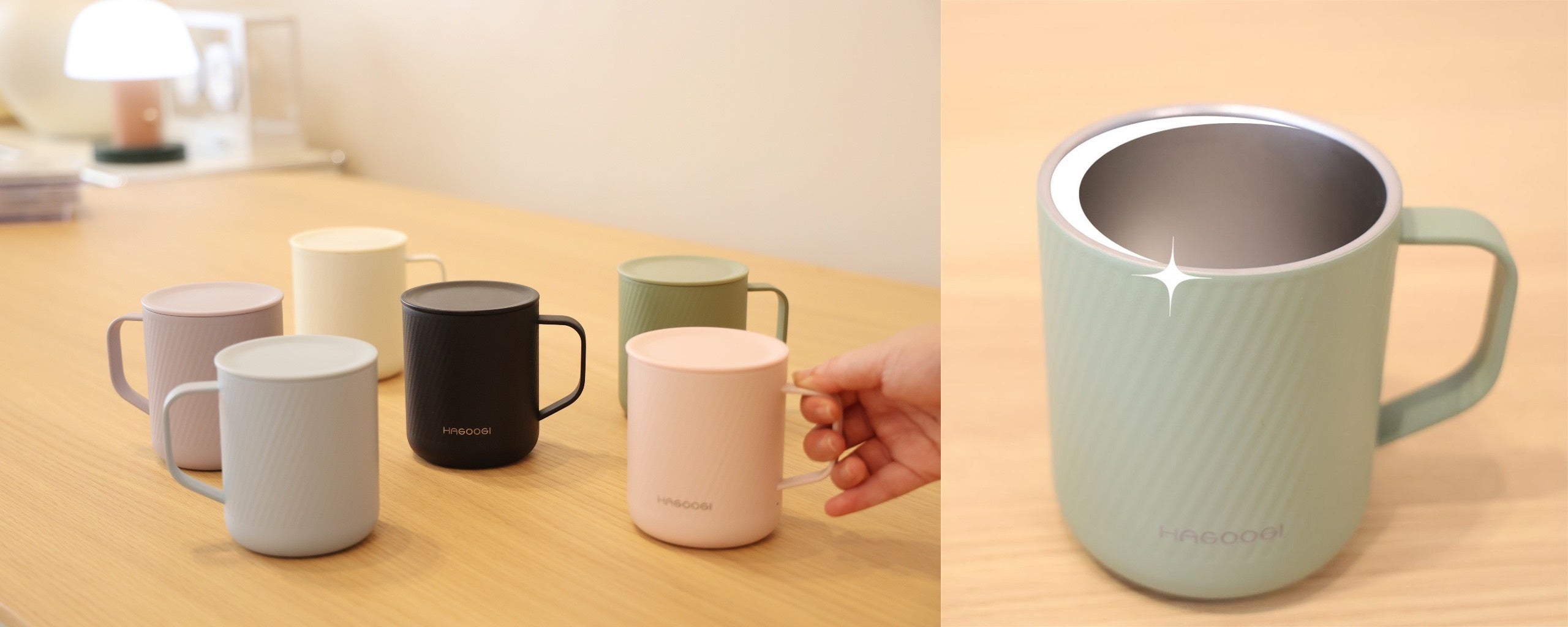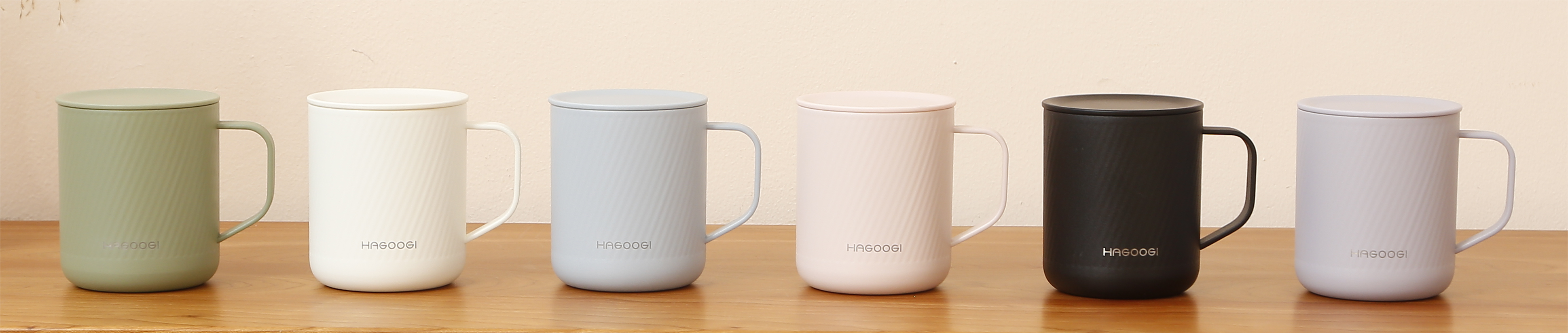 HAGOOGI 真空断熱マグカップは、保温・保冷性に優れ、ほこりを防ぐフタ付きのマグカップです。他のマグカップと比較して、ブラック・ホワイト・グリーン・ブルー・ピンク・パープルの6色のカラーバリエーションがあり、生き生きとした色合いとおしゃれで洗練されたデザインが特徴です。