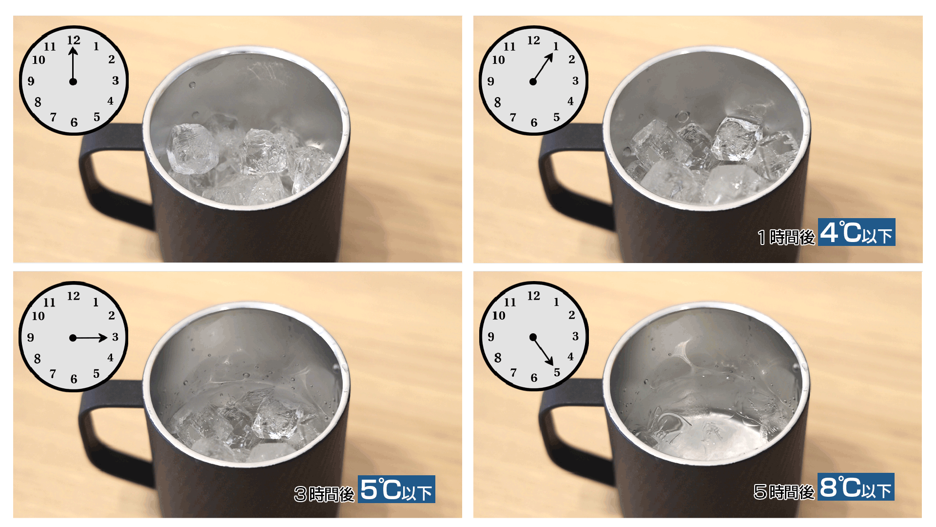 ②保冷効力4℃/5℃/8℃以下(1/3/5時間)