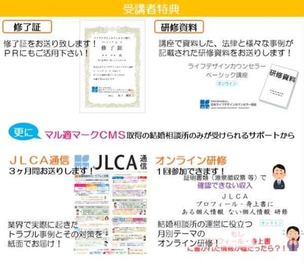 特定非営利活動法人 日本ライフデザインカウンセラー協会(JLCA)は、結婚相談所の運営に不可欠なコンプライアンス知識を習得する「結婚相談業コンプライアンス基礎研修」を開催しています。