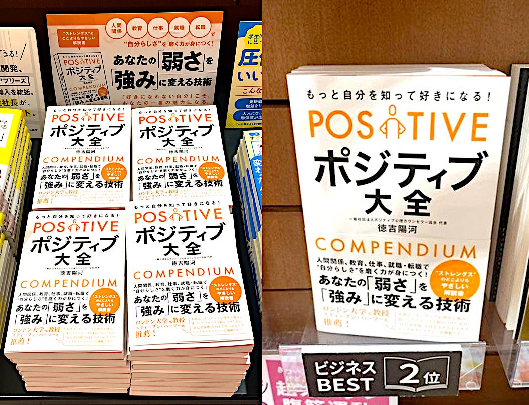 一般社団法人ポジティブ心理カウンセラー協会(本部:東京都港区、代表理事:徳吉陽河)は、総合法令出版社(所在地:東京都中央区)を通じて『《ポジティブ大全》「あなたの弱さを強みにする技術」』本日5月10日より,正式に発売を致します。(好評に付き,一部の都内書店にて先行販売中,電子書籍:Kindle・楽天kobo版の発売)