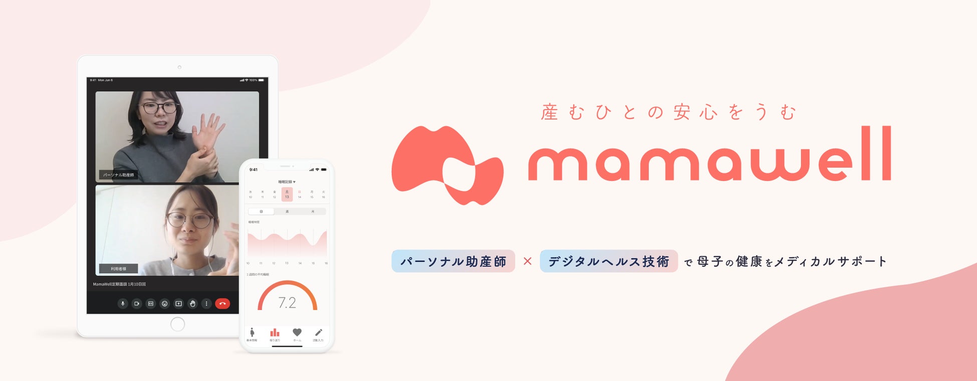 このサービスは、ウェアラブルデバイスを用いて心拍数や活動量などのバイタルデータをリアルタイムで収集し、妊娠中の女性の健康状態をモニタリングします。収集されたデータをもとに、パーソナル助産師が個別に最適化された健康管理プランを提供し、妊娠・出産に関連する教育資料の提供や24時間対応のLINEを通じて、妊娠中の女性が直面する可能性のある問題に対して教育とサポートを行います。MamaWellは、「産むひとの安心をうむ」ために妊婦の伴走者として健やかな妊娠生活をサポートします。