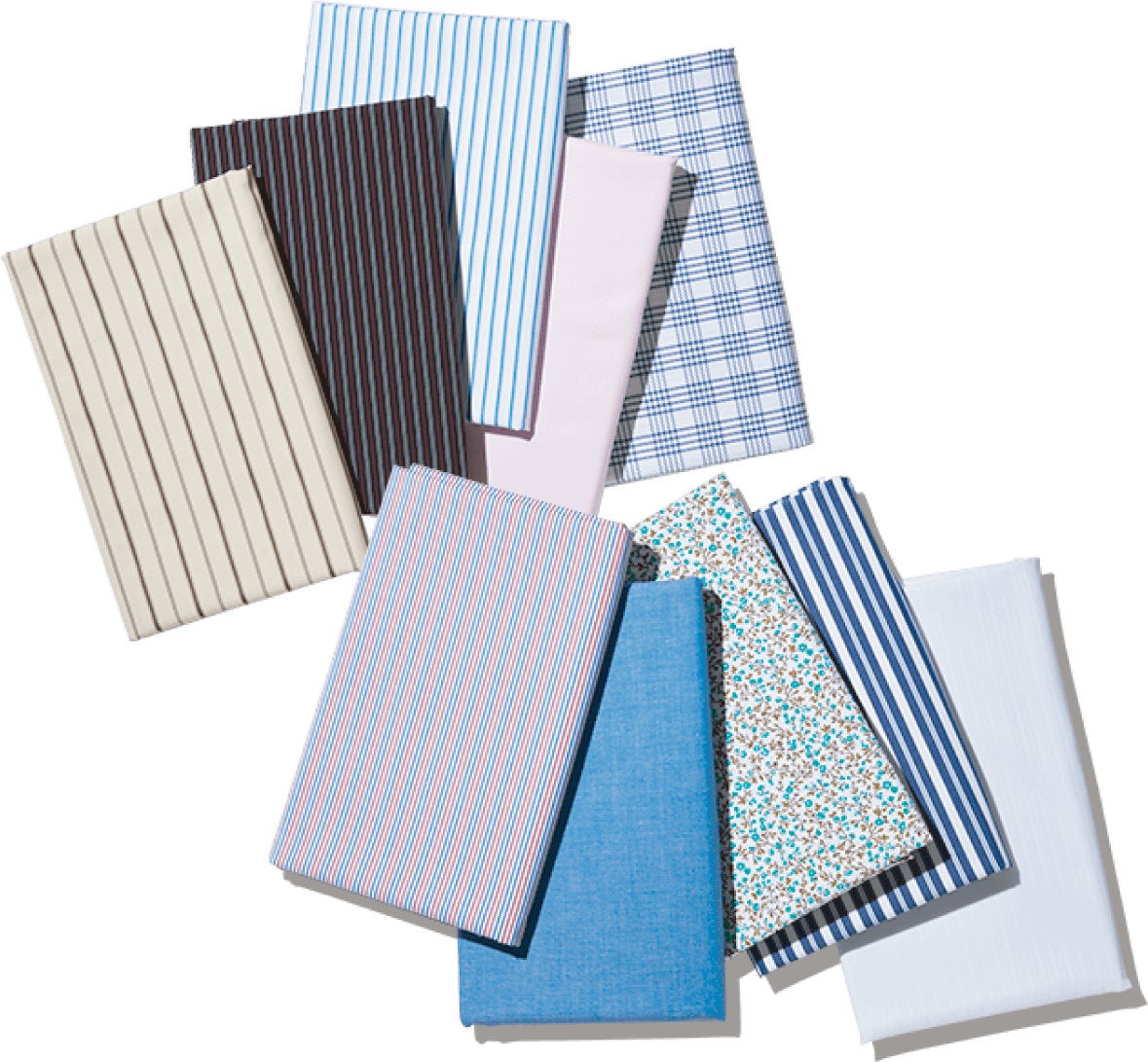 貴方の個性に応えるために、選べる生地バリーションの豊富さも特徴です。上質な国産の綿100%からトーマスメイソン・アルビニ・レジウノ等の海外生地、トレンドのリネンまでラインナップしています。シャツ1着分をカットした大きな生地のため、出来上がりのイメージも想像しやすいことも人気の1つです。