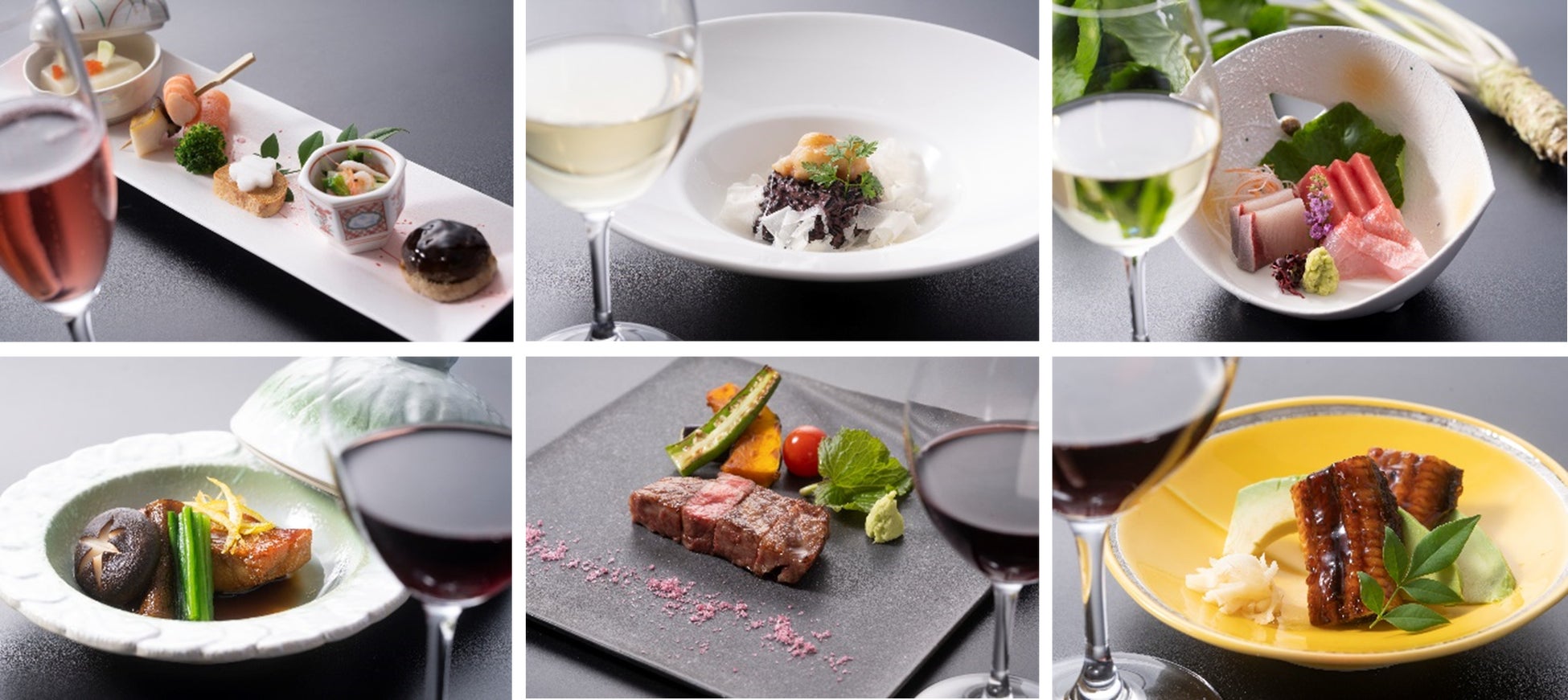 会席料理メニューに合わせ、ソムリエが厳選した7種のワインをご用意します。