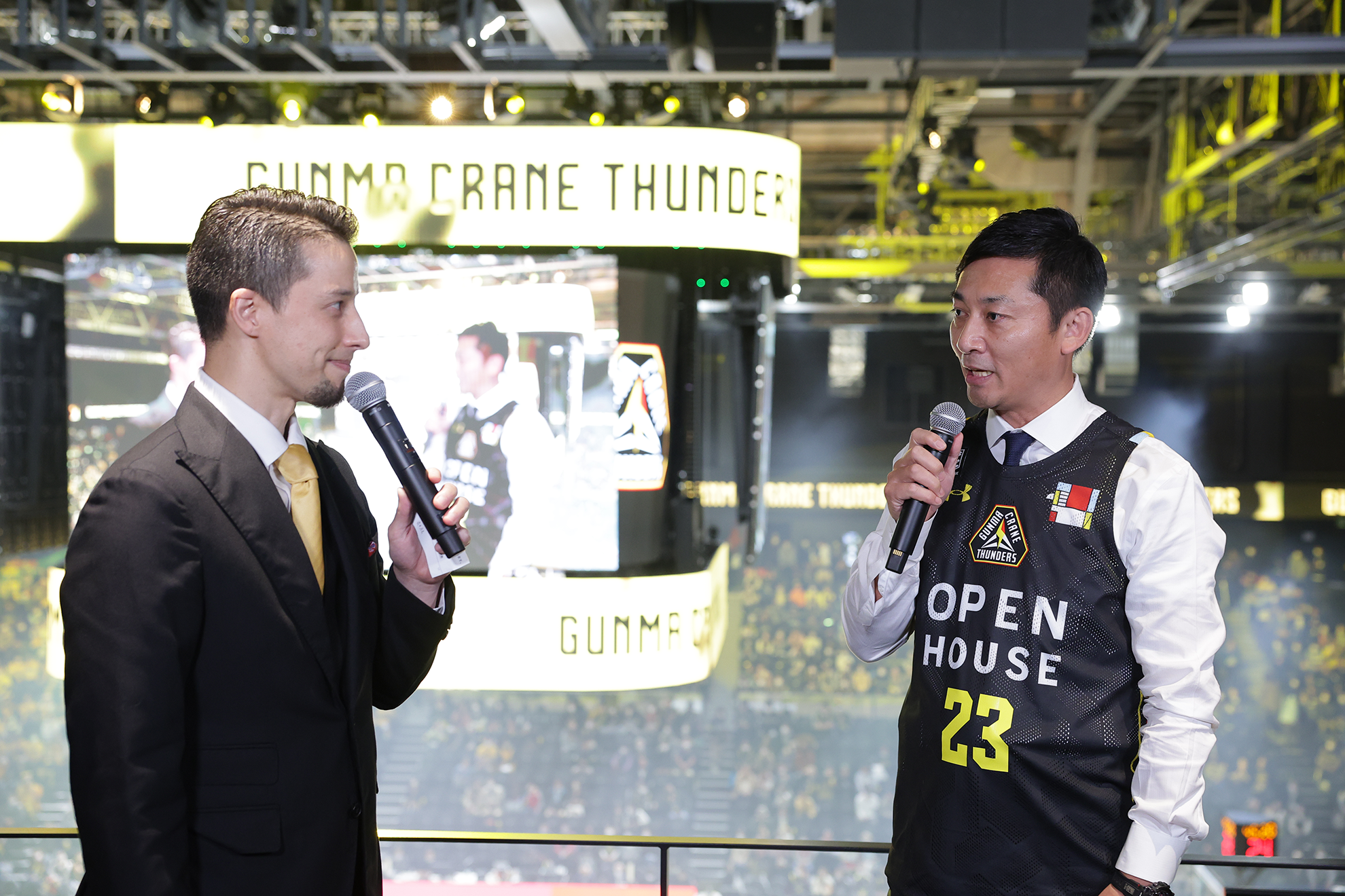 コンパクトアリーナだが設備や質、ダイナミックさは残すという、Bリーグが地方都市で推奨する上でのモデルケースになるアリーナだと思ってすごく楽しみに会場に来ましたけども、オープニングの照明を見て、群馬県の太田市というそんなに大きな都市ではないところで、こういった素晴らしいアリーナができて熱狂空間が生まれるっというのは、実は感動したというかウルっと来たというか、ものすごく感慨深かったと思います。」