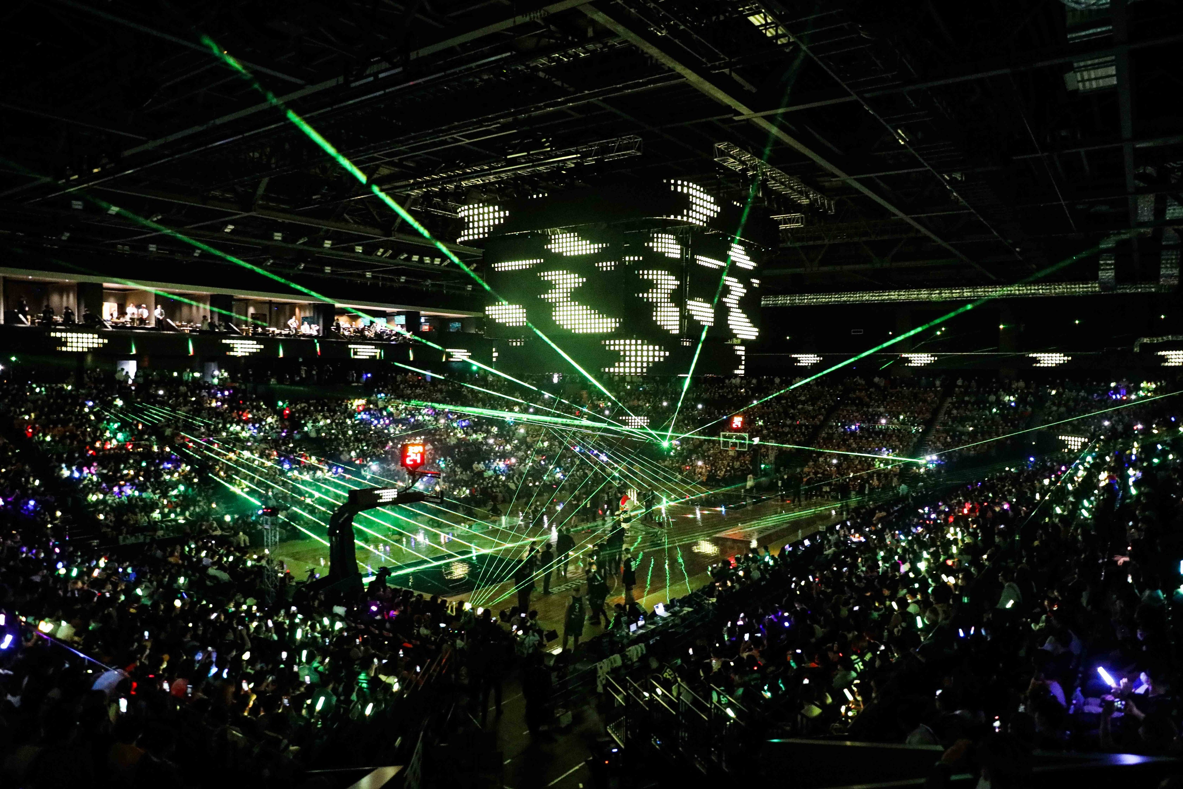 会場に足を踏み入れたお客様からは、「すごい!」、「でか!」という声が飛び交いました。試合前の演出でも存分な存在感を発揮した、ビッグビジョン。暗転から始まった音と光による演出は会場内からどよめきが起こりました!