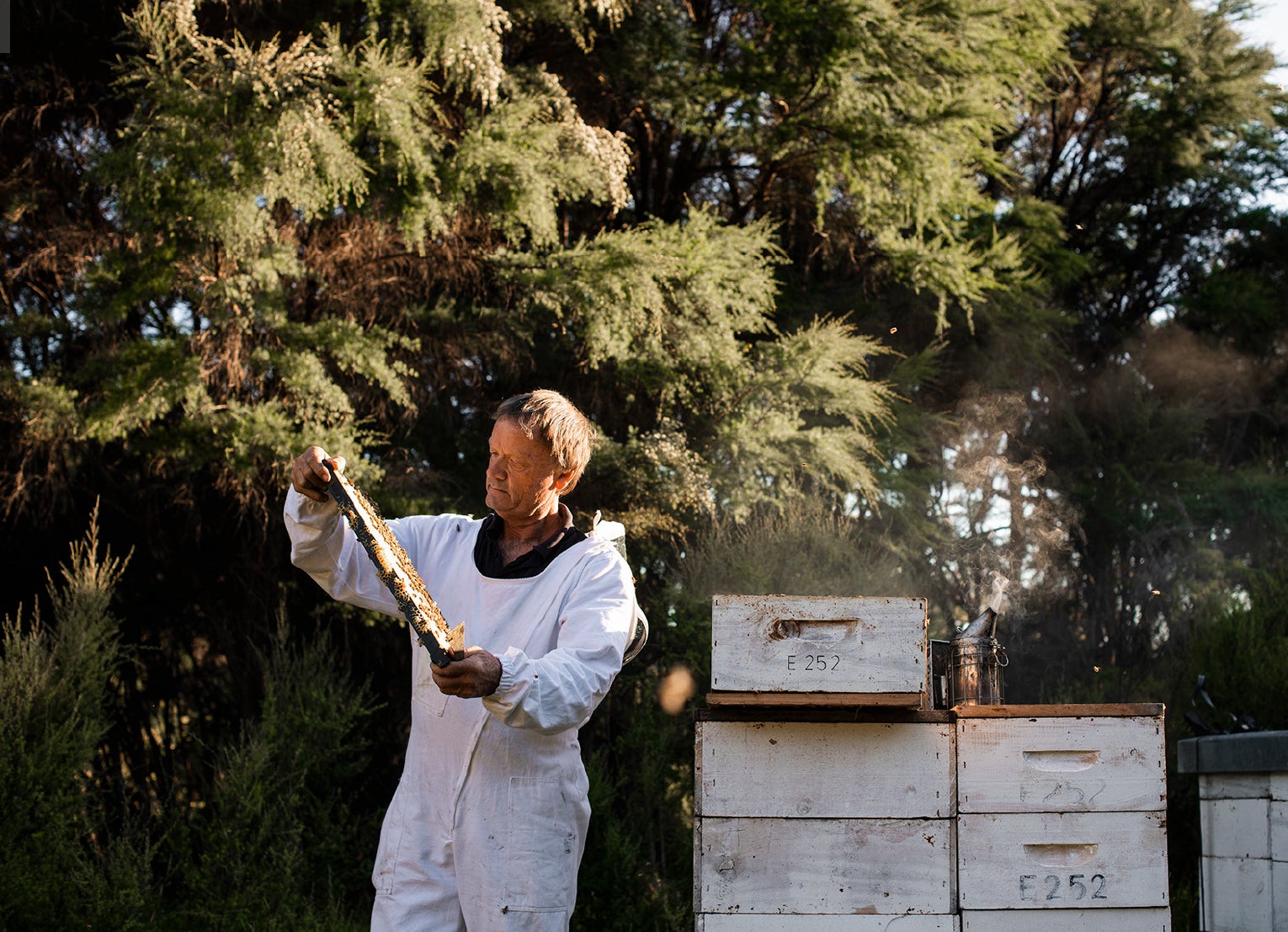 12歳で初めて巣箱を持ち、以来50年以上にわたって養蜂と真摯に向き合ってきました。気候や花の咲き方を読み取り、蜂たちと共に働くその姿勢は、いまやニュージーランド国内でも業界の模範とされています。