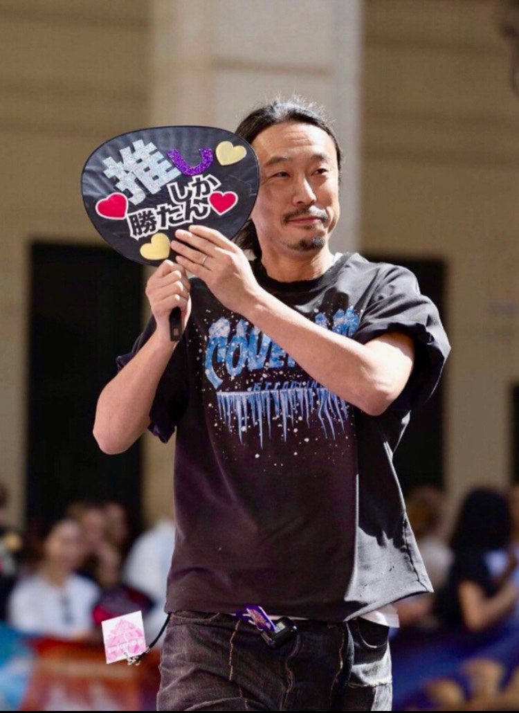 今回のコレクションでは、現代の「推し活」文化だけでなく、伝統的な応援の装いなどを取り入れ、ストリート感あふれるスタイルを展開しました。特に注目すべき点は、地球環境への負荷を軽減する素材やリサイクル素材、そして機能性とファッション性を両立した素材作りに携わる人々を「推し」ている点です。
