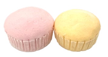 クッピーラムネをイメージしたイチゴ風味とオレンジ風味の蒸しぱん