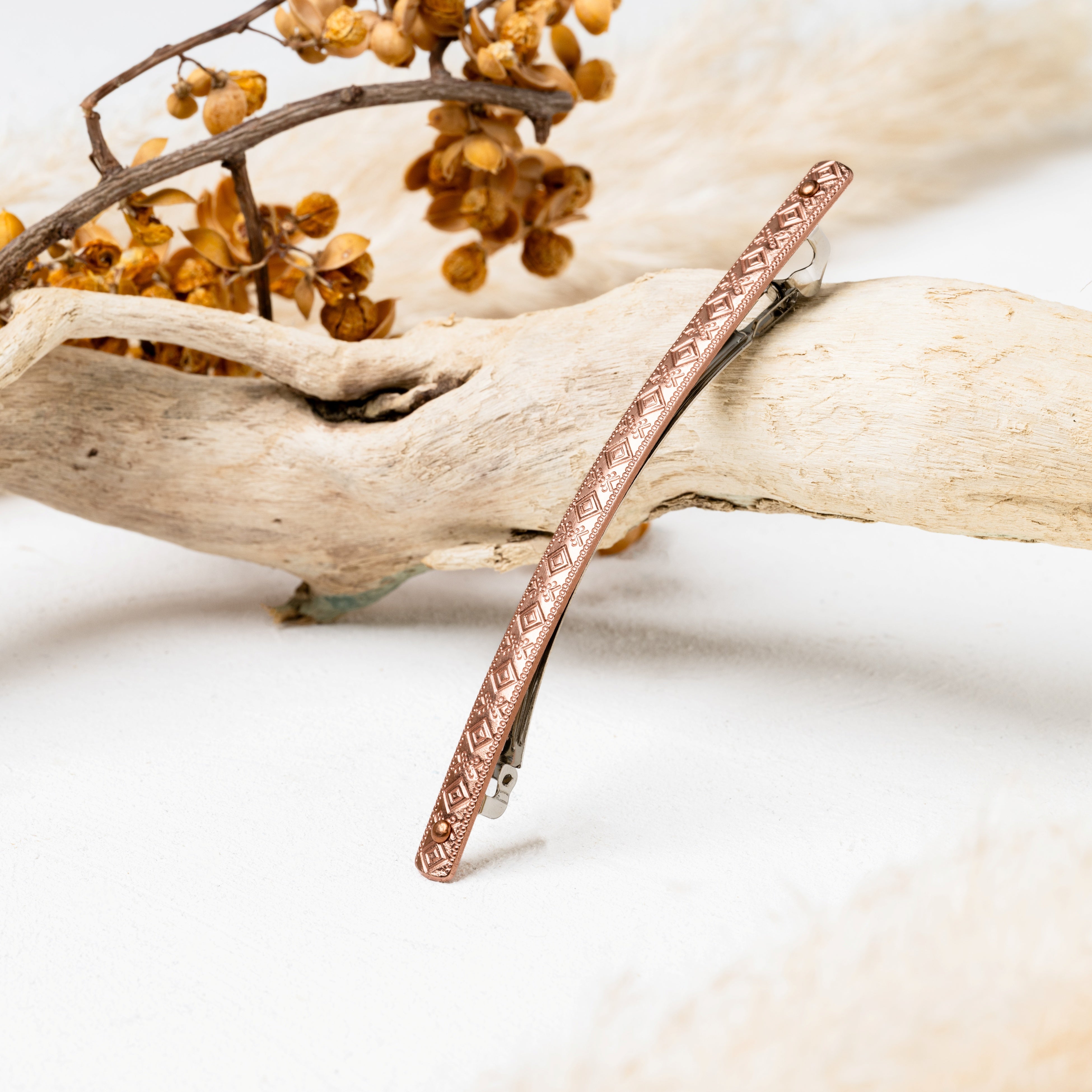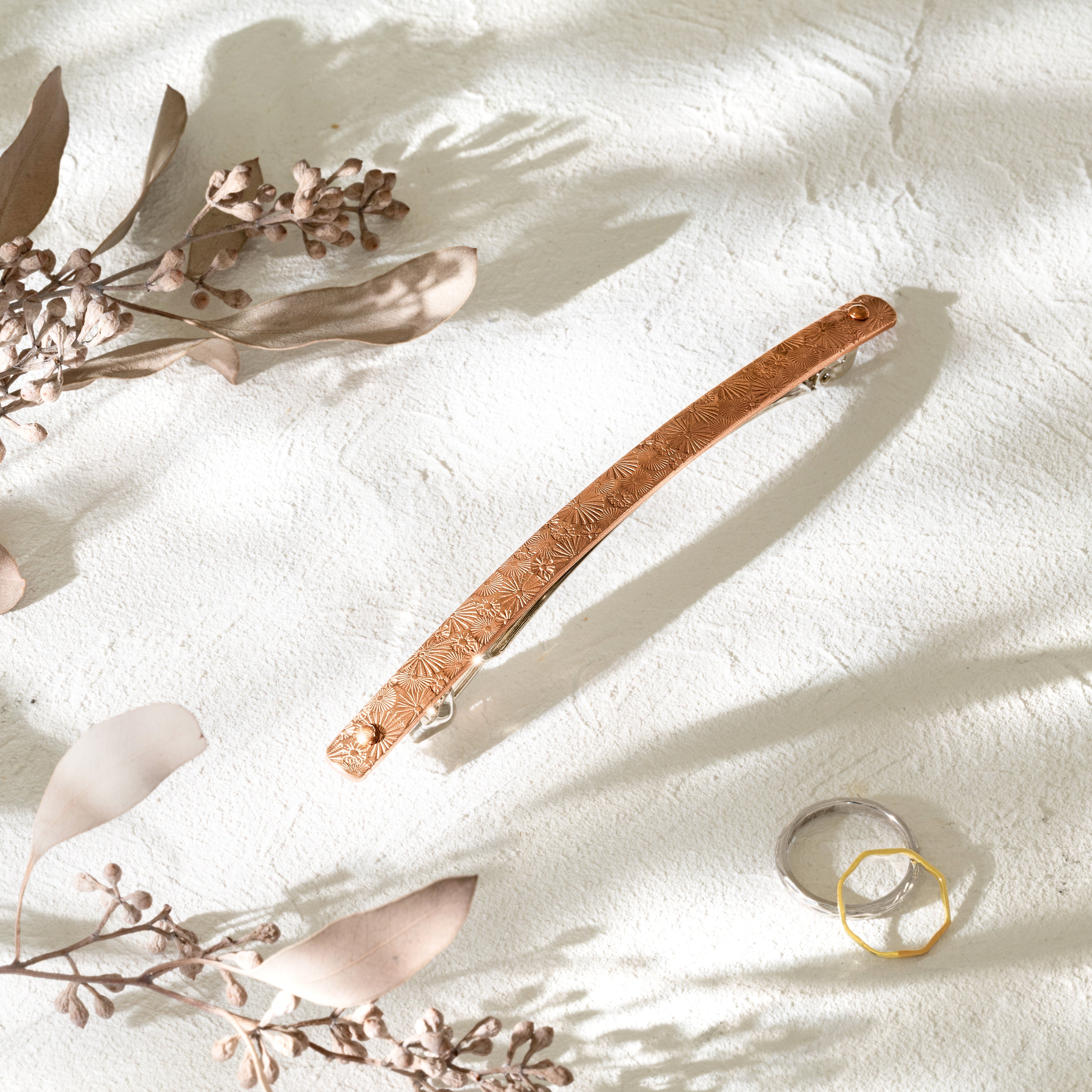 素材には、バレッタとしては市場でもほとんど例を見ない銅を採用。