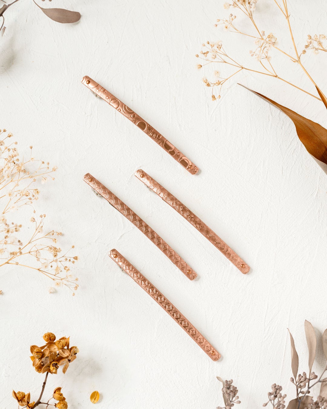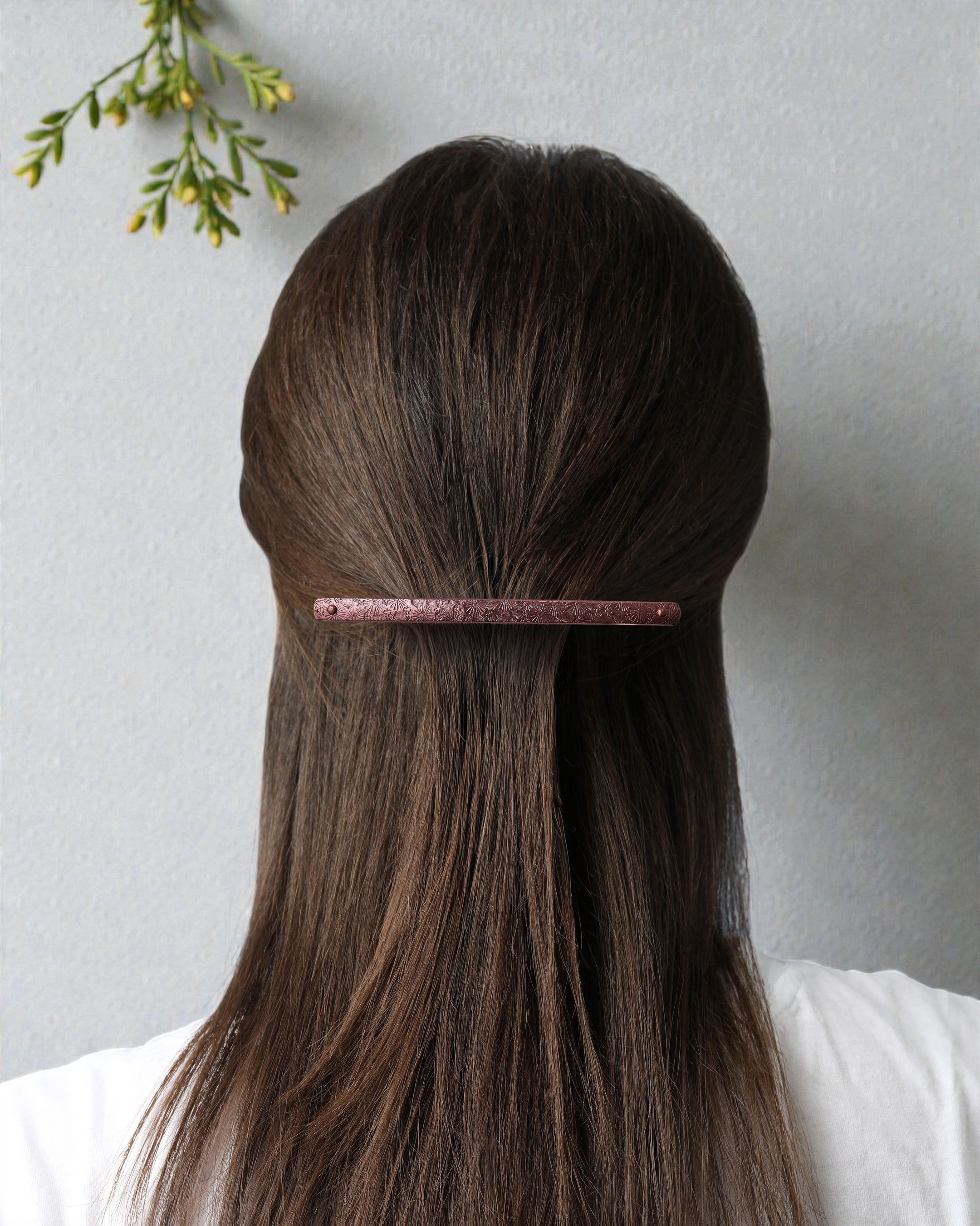 市場でも極めて珍しい「銅素材」を採用し、彫金による表情豊かなデザインと、“気分をデザインする”というコンセプトを融合。伝統の技を現代の装いへと軽やかに取り入れた、新しい髪飾りです。