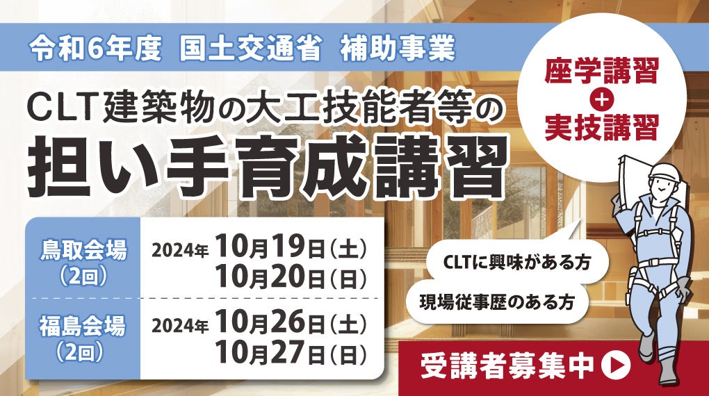 CLT建築に興味のある大工技能者・大工技能者を目指す方へ「CLT建築物の大工技能者等の担い手育成講習」 受講者募集開始!