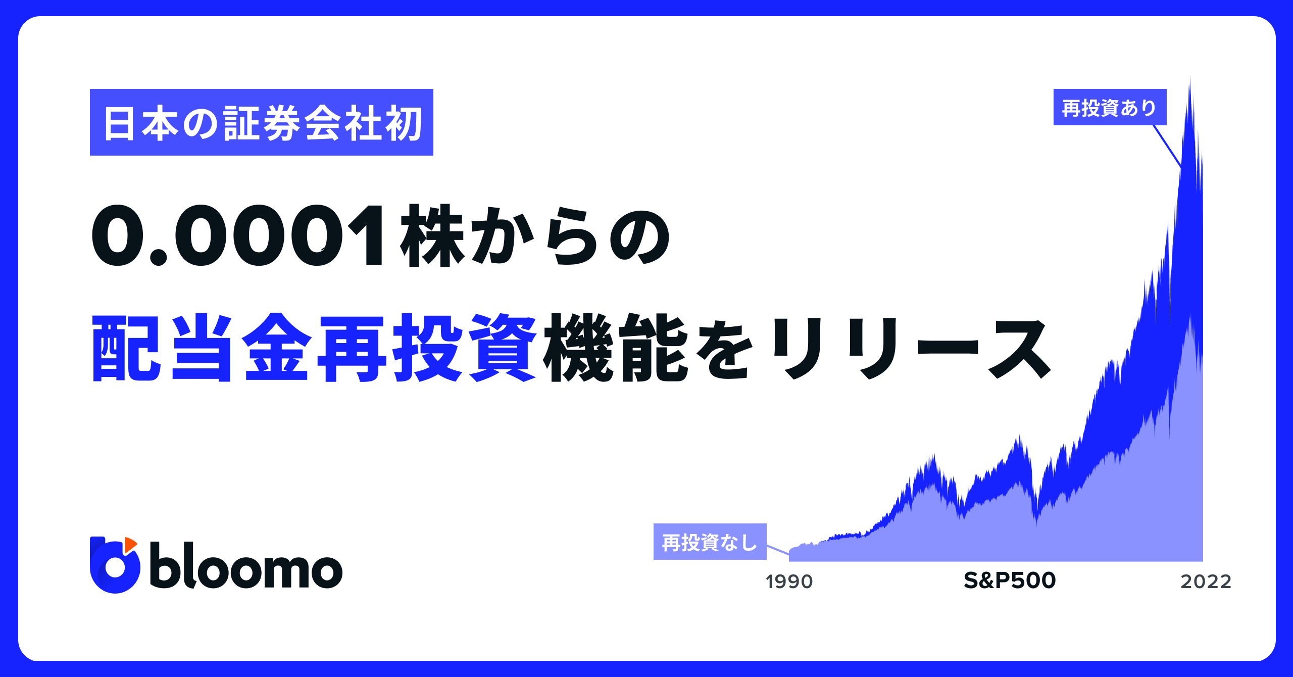 ブルーモでは、日本の証券会社としては初めて、自分で選んだ株式・ETFから受け取った配当金・分配金を、0.0001株単位で自動的に再投資できるようになりました。