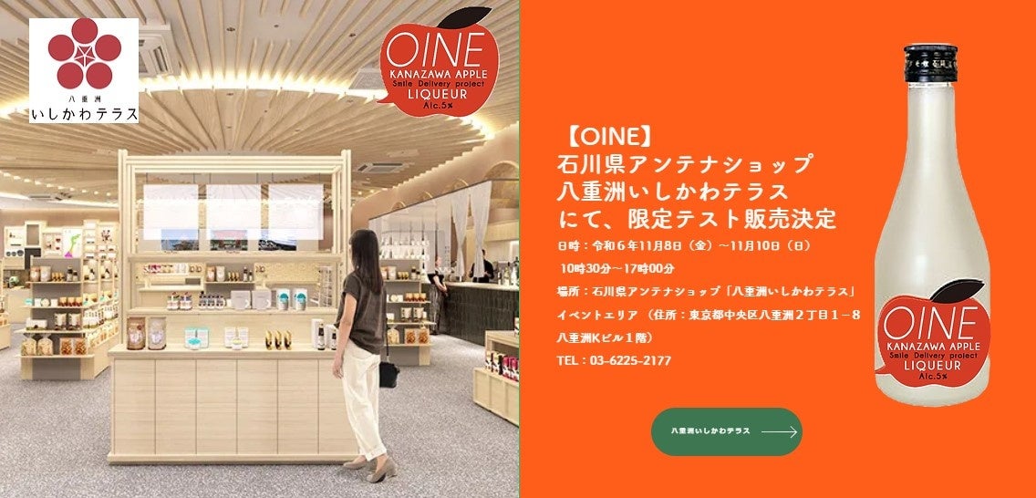 【金沢アップルリキュール「OINE(おいね)」テスト販売実施概要】