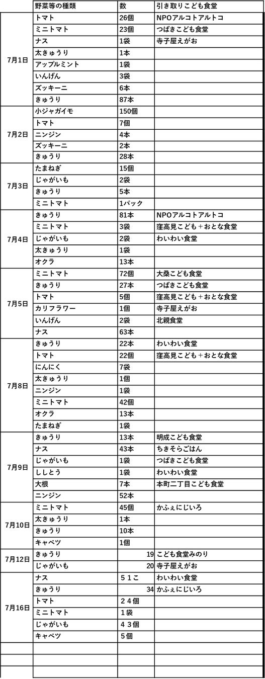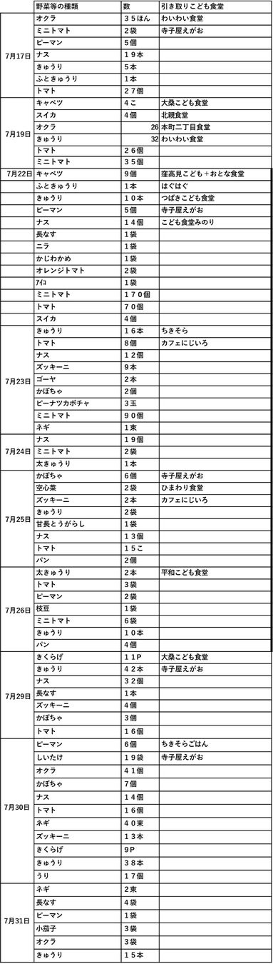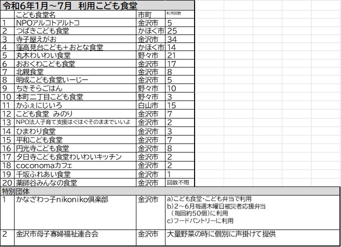 1>こども食堂:食材提供実績先一覧(令和6年1月~7月)