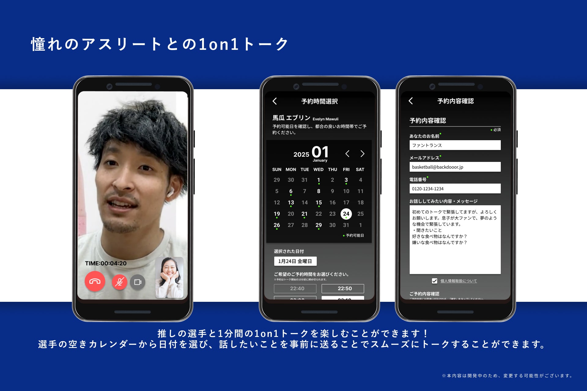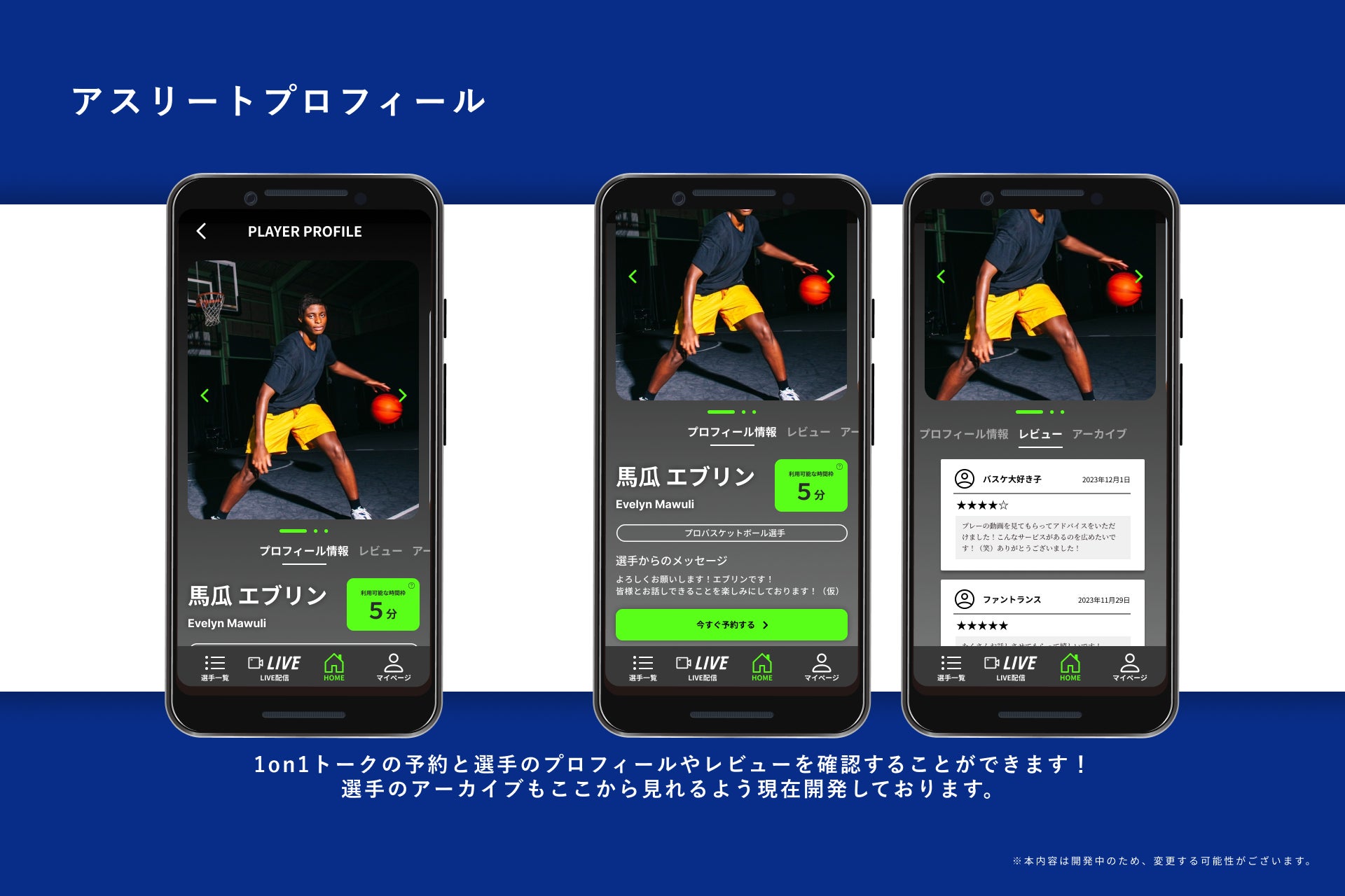 『アスリートプロフィール』...1on1トークの予約と選手のプロフィール/レビュー