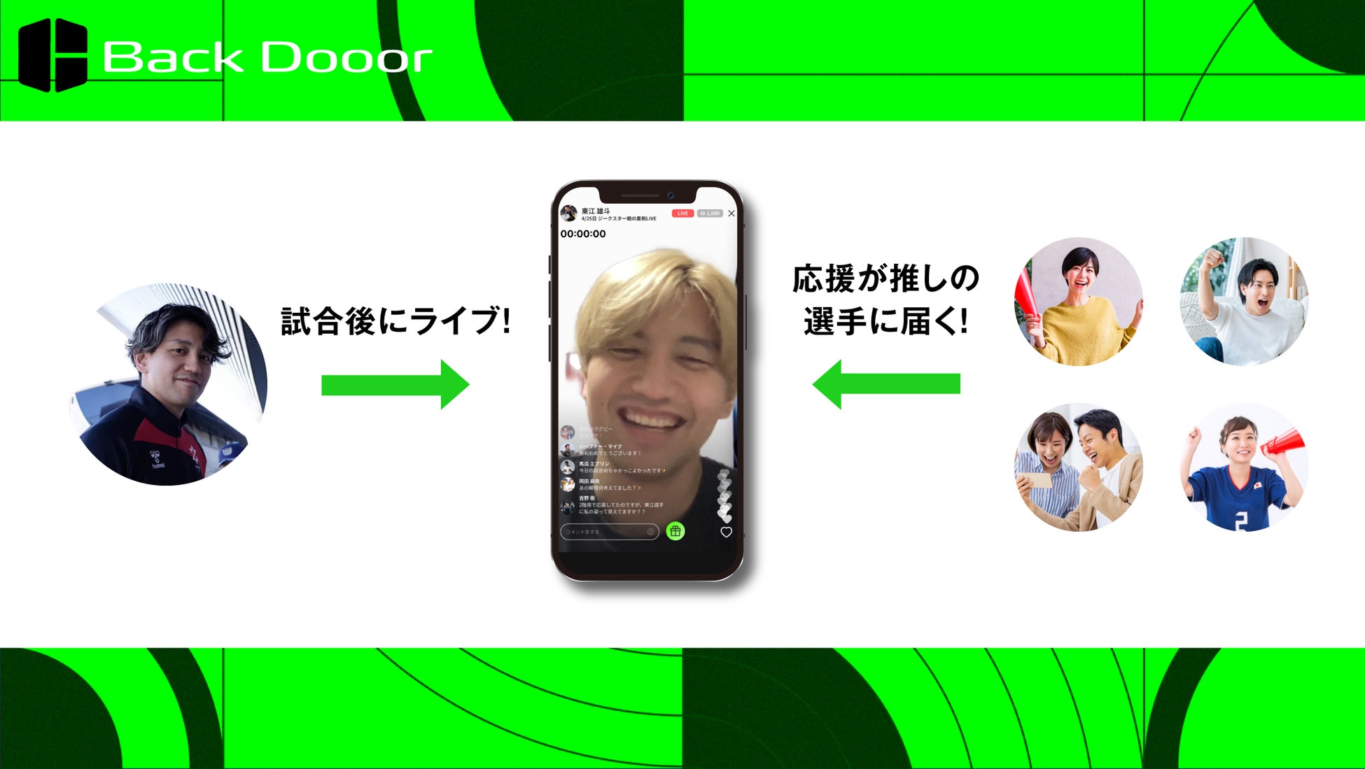 Back Dooor株式会社( 所在地 : 名古屋市昭和区 代表取締役社長 馬瓜エブリン)は、試合後アスリートのライブ配信を視聴できるアプリFantrance(ファントランス)の提供を開始します。