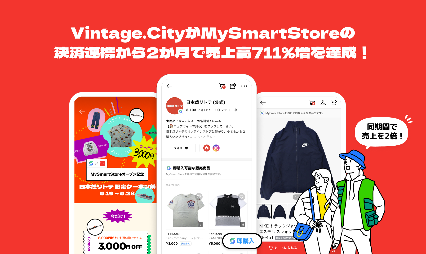 Vintage.CityがMySmartStoreの決済連携から2か月で売上高711%増を達成!