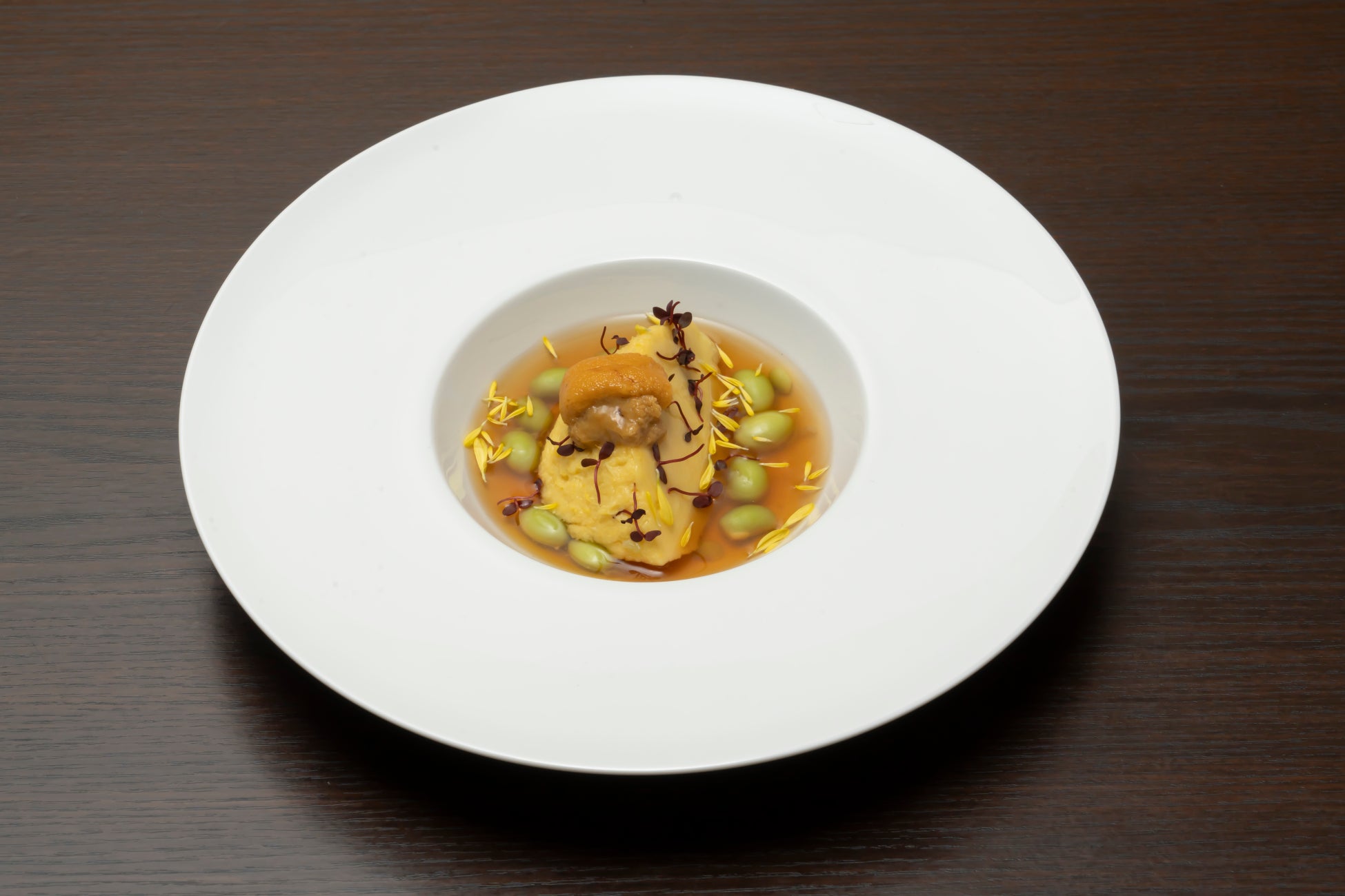 料理は、「世界のベスト・レストラン50」で5度、世界1位を獲得したスペインのレストラン「エル・ブリ」で修業し、帰国後に体験型レストラン「81」を立ち上げた料理人・永島健志氏が監修。“伝統と革新”をテーマに、法隆寺や法隆寺宝物館の収蔵品に着想を得た特別コースを提供しました。