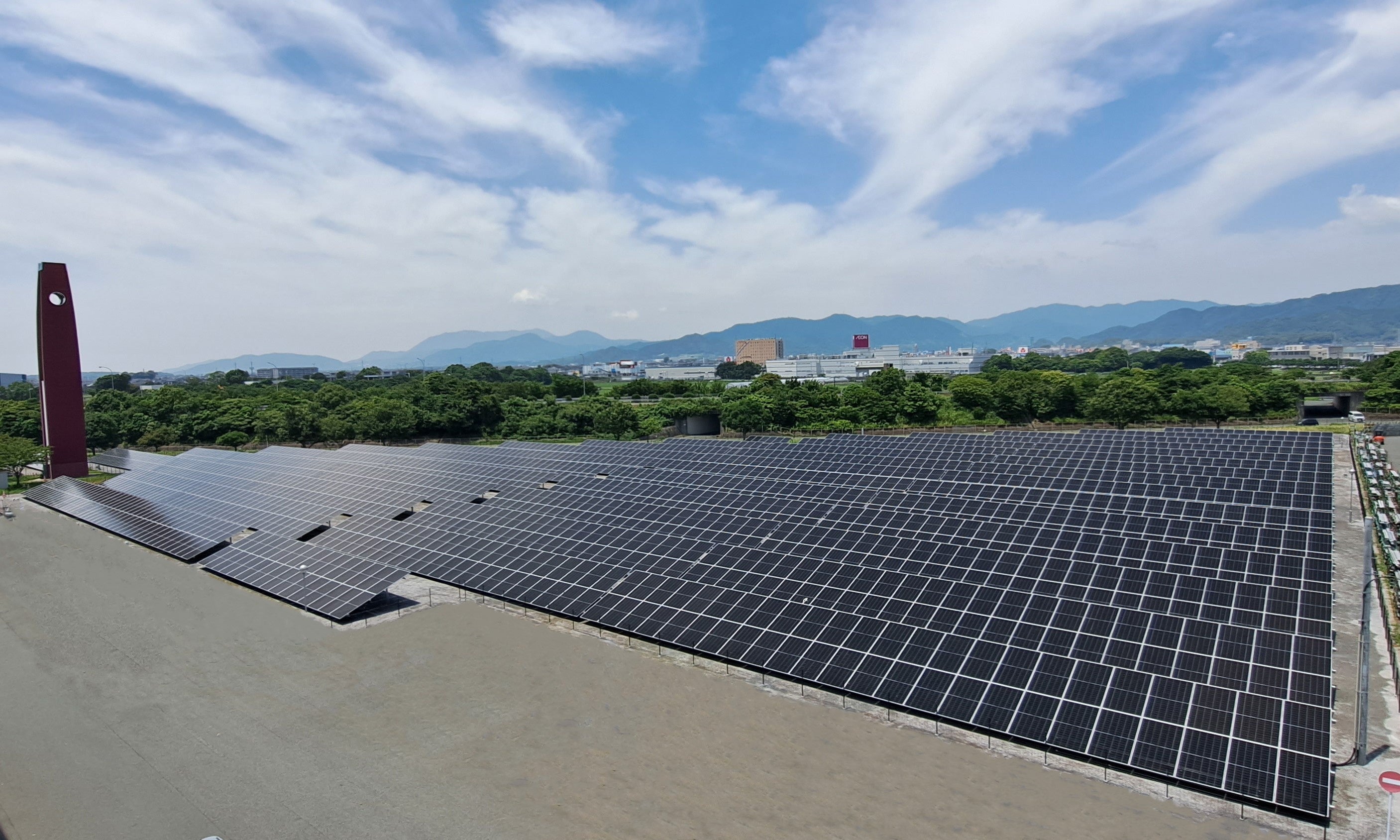 このたび九州工場の敷地内に設置した太陽光発電設備は、パネルの総面積が7,016㎡で、1,478kW(キロワット) の発電能力を有します。九州工場で使用する電力の約40%をまかなう予定で、年間約460トンのCO2排出量削減を見込んでいます。