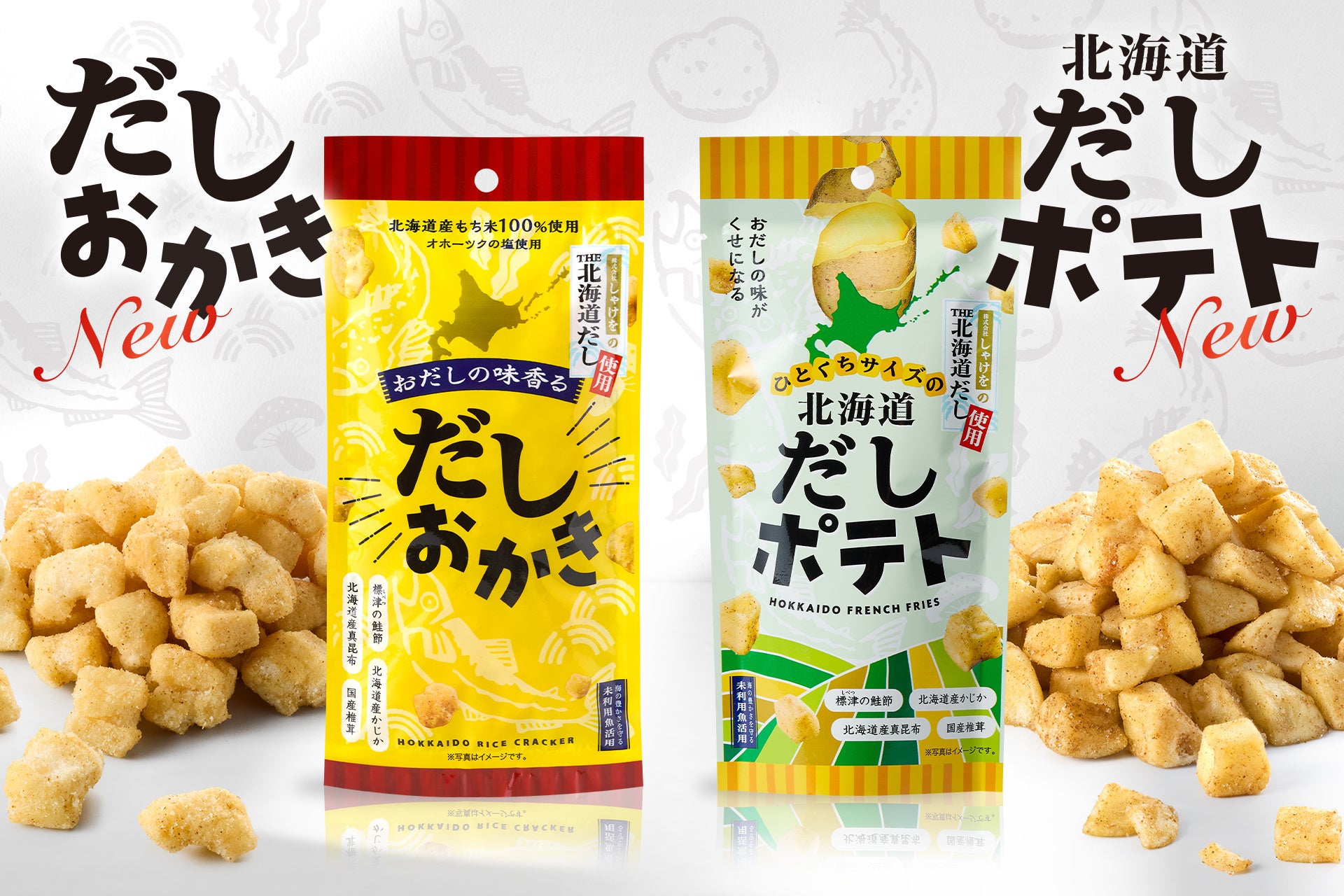 "だしを食べるお菓子”シリーズがリニューアル!『だしおかき』『北海道のだしポテト』が3月5日より発売中