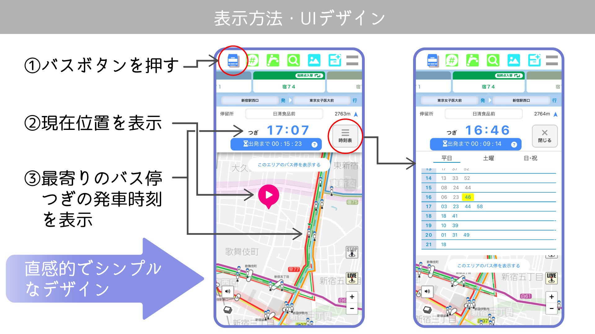 SUPER路線図は地図上に視覚的にバス情報を表示します。これまでのテキスト入力を伴う検索サービスと比べ、直感的にバス情報を調べられるようになり、国内外ユーザーを問わず、多くのユーザーにとってわかりやすくバス情報を提供できます。