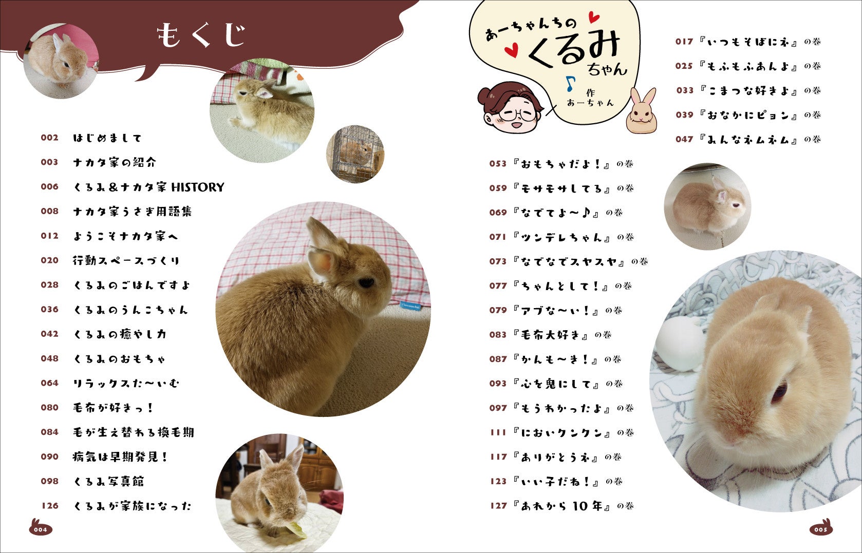 『いつもそばにネ』の巻/『もふもふあんよ』の巻/『こまつな好きよ』の巻/『おなかにピョン』の巻/『みんなネムネム』の巻/『おもちゃだよ!』の巻/『モサモサしてる』の巻/『なでてよ〜♪』の巻/『ツンデレちゃん』の巻/『なでなでスヤスヤ』の巻/『ちゃんとして!』の巻/『アブな〜い!』の巻/『毛布大好き』の巻/『かんも〜き!』の巻/『心を鬼にして』の巻/『もうわかったよ』の巻/『においクンクン』の巻/『ありがとうネ』の巻/『いい子だね!』の巻/『あれから10年』の巻