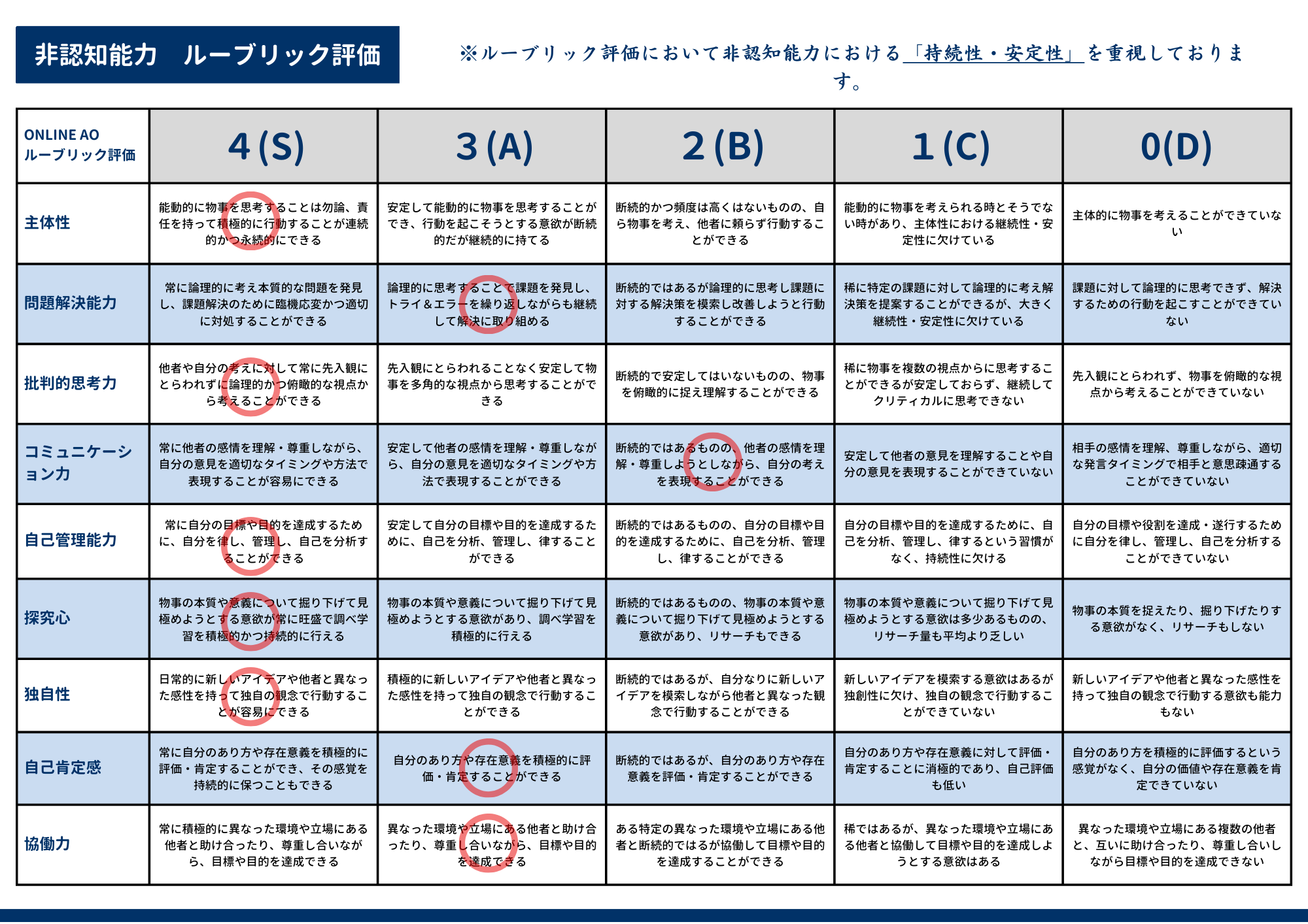 AO推薦入試塾を運営する教育系スタートアップが、非認知能力を可視化・評価する「ルーブリック評価シート」を作成。