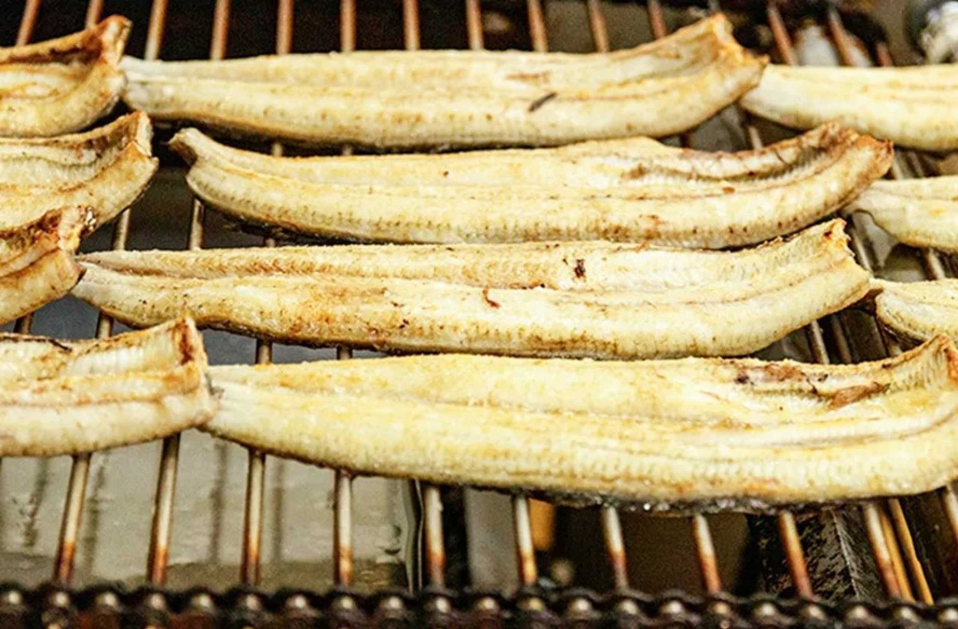 ○使用するのは、三重県桑名市産の養殖うなぎ「木曽三川(きそさんせん)うなぎ」です。一般的な氷締めや電気ショックでは臭みや風味劣化につながるため、職人が一匹ずつ活き締めし白焼きにします。加島屋ではこの白焼きの状態のものを仕入れています。