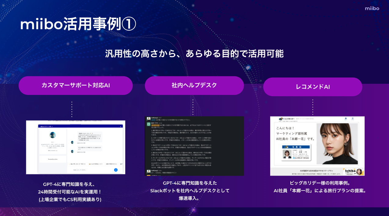 【miiboで作ったAIのユースケース例】