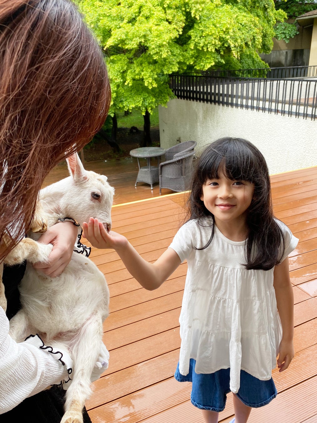 内容: 中庭の芝生広場(雨天時は軒先)でリードを繋いだヤギさんとのお散歩や餌やり体験を無料開催中。お子様だけでなく、大人の方にも大人気のアクティビティです。